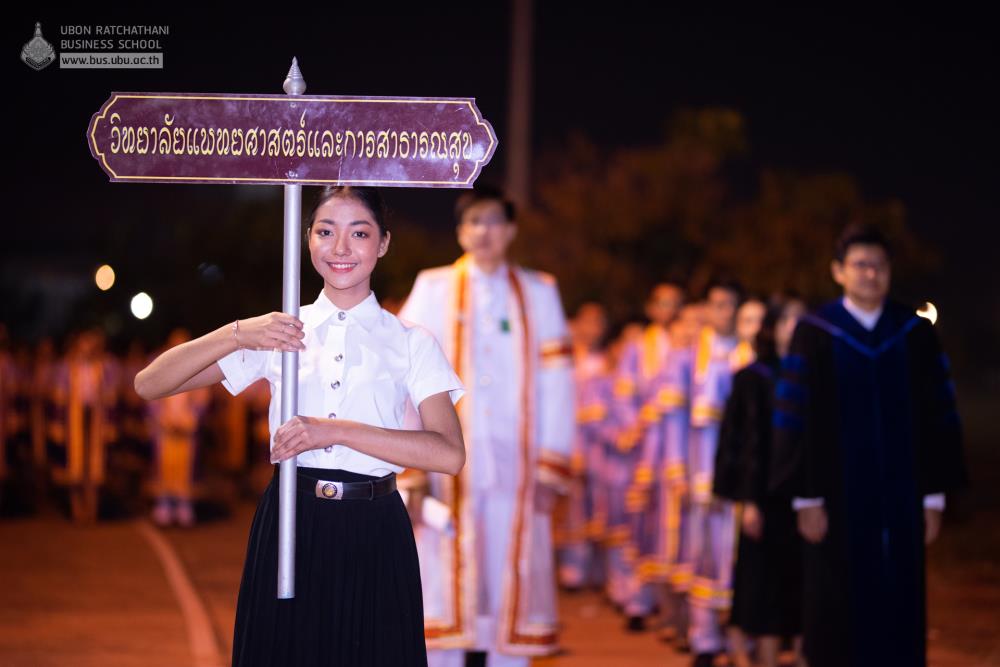 บรรยากาศการนำขบวนบัณฑิตมหาวิทยาลัยอุบลราชธานีเข้าเขตพิธีพระราชทานปริญญาบัตร ณ วันที่ 20 ธ.ค. 61