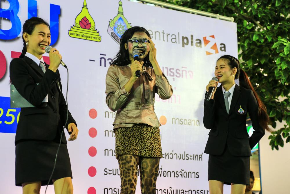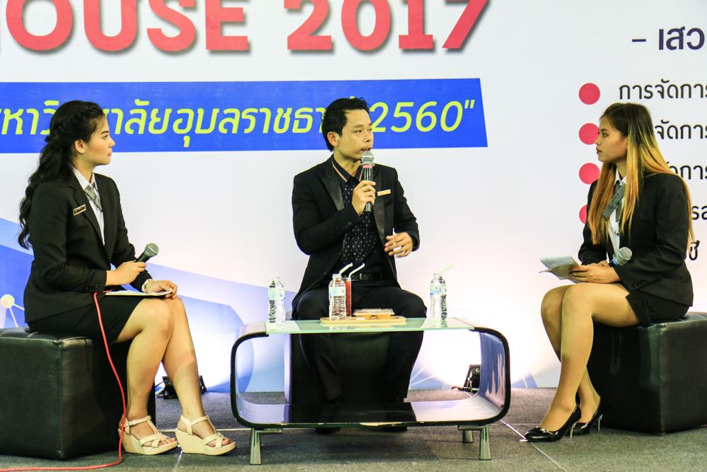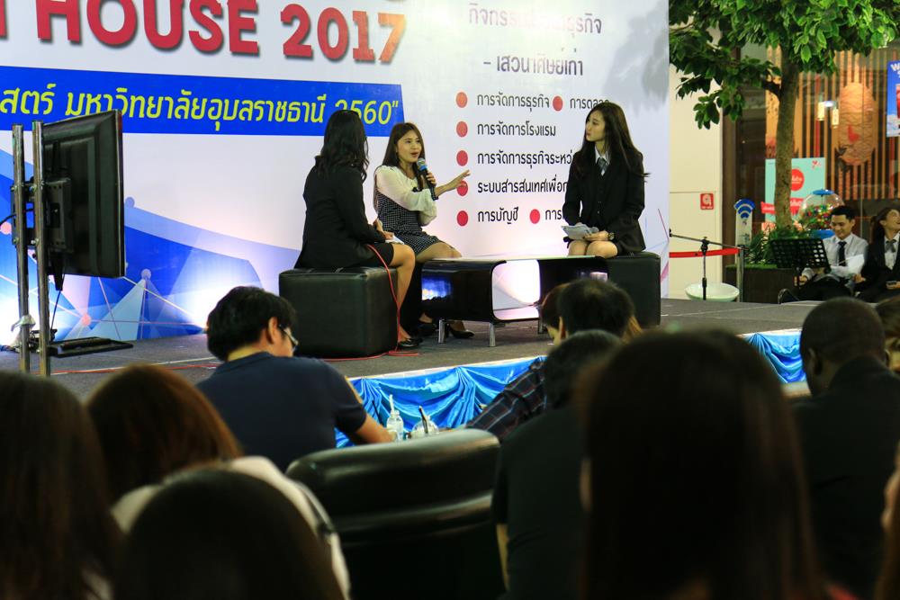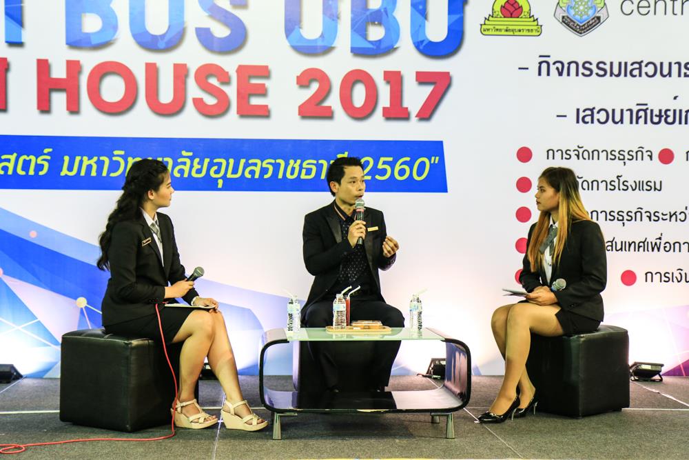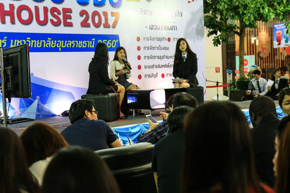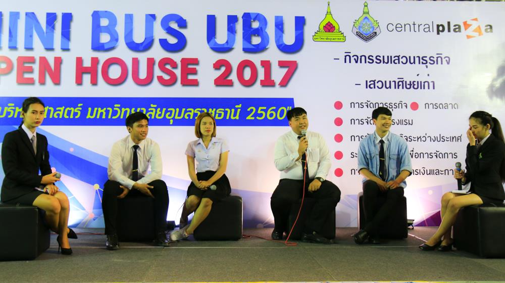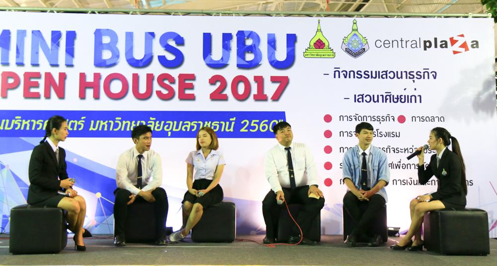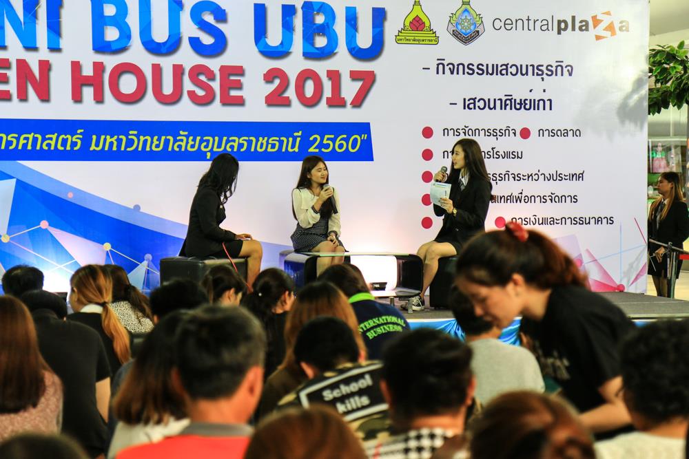 กิจกรรมเปิดบ้านบริหารศาสตร์ วันที่ 30 เม.ย. 60 ได้แก่ การเดินแบบผลิตภัณฑ์ แลการเสวนาการตลาด จั๊บ จั๊บ ณ ศูนย์การค้าเซ็นทรัลพลาซา จ.อุบลราชธานี
