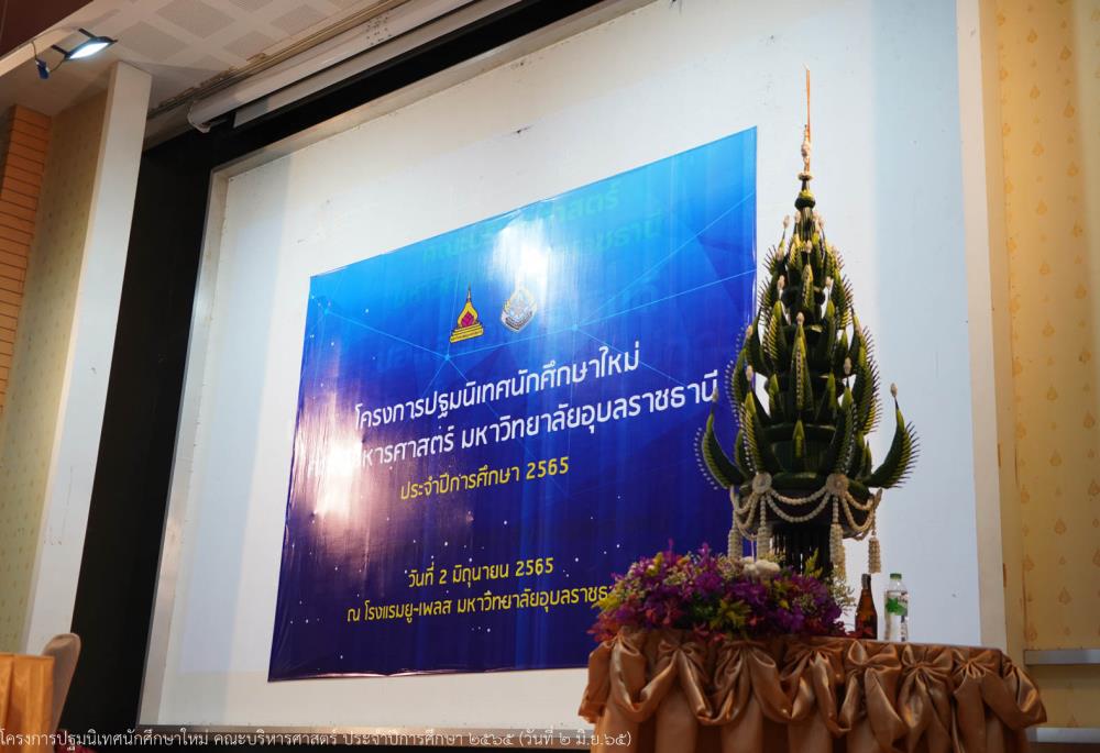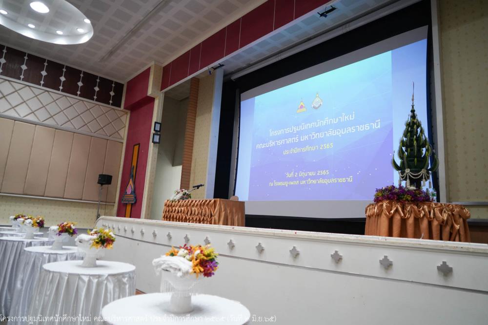 โครงการปฐมนิเทศนักศึกษาใหม่ คณะบริหารศาสตร์ มหาวิทยาลัยอุบลราชธานี ประจำปีการศึกษา 2565 วันที่ 2 มิถุนายน 2565 ณ โรงแรมยู-เพลส มหาวิทยาลัยอุบลราชธานี