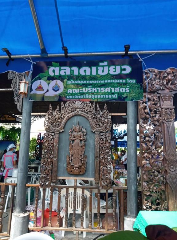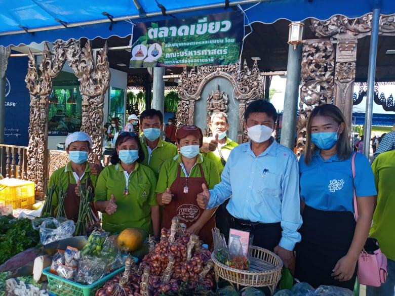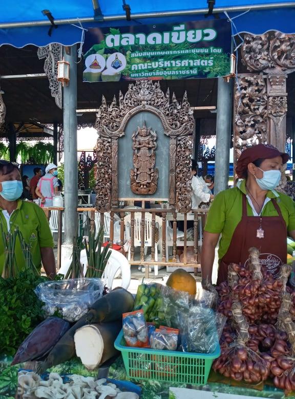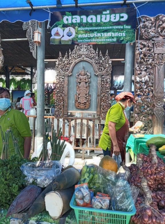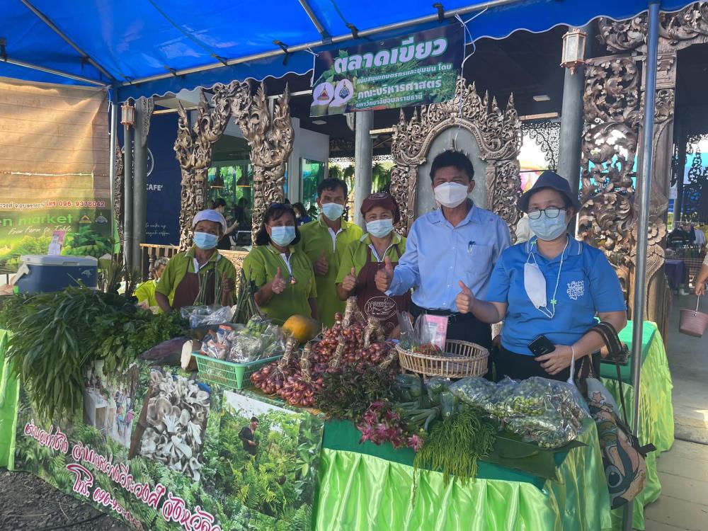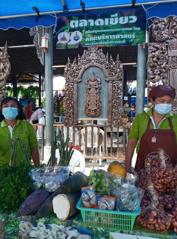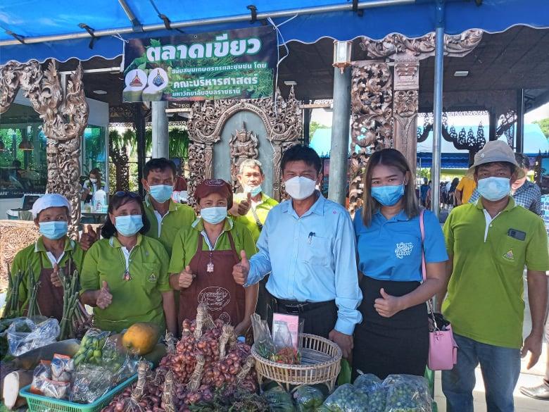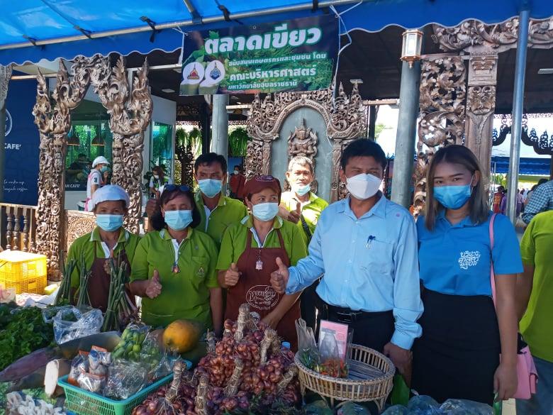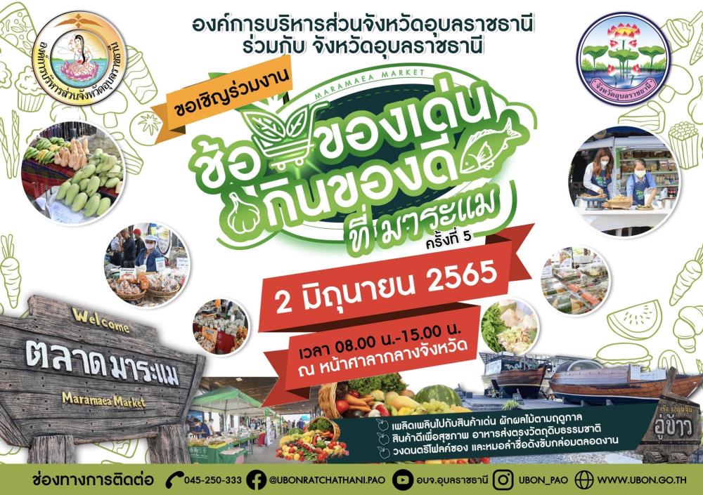 ผศ.ดร.อุทัย อันพิมพ์ รองคณบดีฝ่ายวิจัยและบริการวิชาการ คณะบริหารศาสตร์ และเกษตรกรกลุ่มตลาดเขียว เข้าร่วมงาน ช้อปของเด่นกินของดี ที่มาระแม ครั้งที่ 5 ณ ตลาดมาระแม ศาลากลางจังหวัดอุบลราชธานี โดยมีผู้ว่าราชการจังหวัดเยี่ยมชมสินค้าของตลาด เมื่อวันที่ 2 มิถุนายน 2565 โดยเกษตรกรได้นำผลผลิตที่เป็นพืชผักปลอดสารพิษ มาร่วมจำหน่ายในงานดังกล่าวด้วย ซี่งได้รับความสนใจจากผู้เข้าร่วมงานในการซื้อผลผลิตปลอดสารพิษเป็นอย่างดี