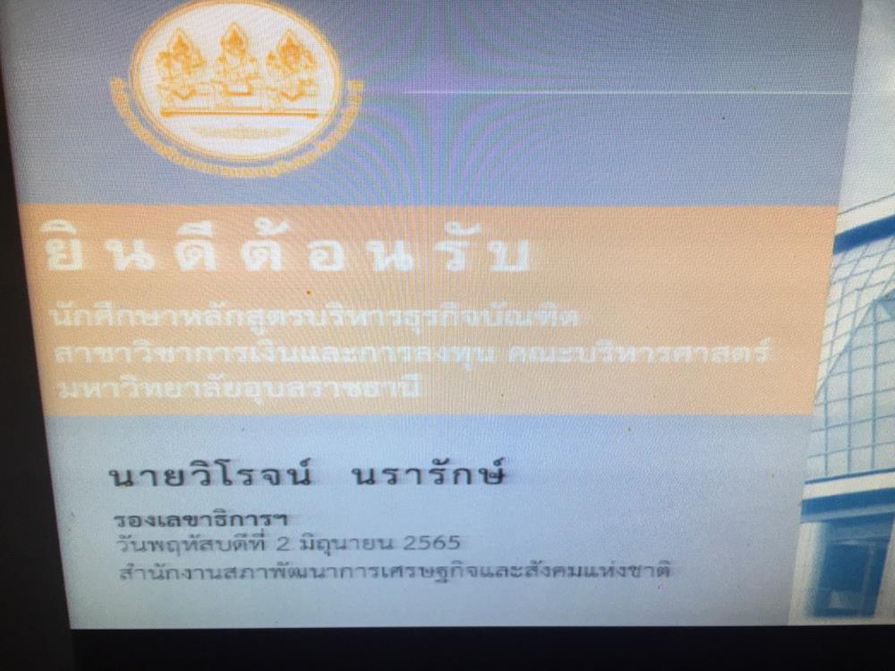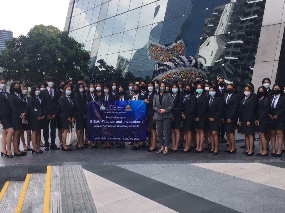 นักศึกษา สาขาการเงินและการลงทุน ศึกษาดูงาน วันที่ 31 พฤษภาคม 2565 ถึง วันที่ 3 มิถุนายน 2565 ณ 1. ตลาดหลักทรัพย์แห่งประเทศไทย 2. ธนาคารแห่งประเทศไทย 3 สำนักงานสภาพัฒนาเศรษฐกิจและสังคมแห่งชาติ (สศช.) 4. โรงไฟฟ้าโซลาร์เซลล์ลอยน้ำไฮบริดเขื่อนสิรินธร ซึ่งเป็นโรงไฟฟ้าโซลาร์เซลล์ลอยน้ำไฮบริดขนาดใหญ่ที่สุดในโลก