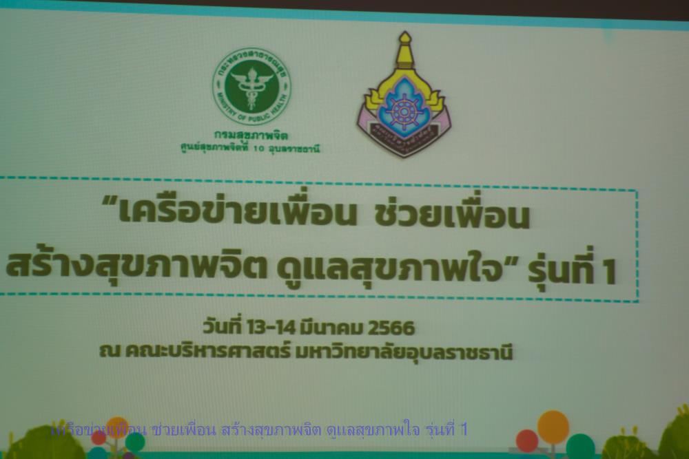 วันที่ 13 - 14 มีนาคม 2566 คณะบริหารศาสตร์จัดกิจกรรม เครือข่าย เพื่อนช่วยเพื่อน สร้างสุขภาพจิต ดูแลสุขภาพใจ รุ่นที่ 1 ให้กับนักศึกษา คณะบริหารศาสตร์ ณ ห้อง MS 111 โดยได้รับเกียรติ คุณธัญญาพร ไชยดำ และคุณกฤติกา สุภรัมย์ วิทยากรจากศูนย์สุขภาพจิต ที่ 10 อุบลราชธานี ท่านคณบดีผู้ช่วยศาสตราจารย์ ดร.อุทัย อันพิมพ์ ให้เกียรติเปิดกิจกรรมดังกล่าว โดย อาจารย์นันทพงษ์ บุญป้อง ผู้ช่วยคณบดีฝ่ายพัฒนานักศึกษา และทีมนักวิชาการศึกษาเข้าร่วมดูแลกิจกรรมให้ผ่านไปด้วยดี