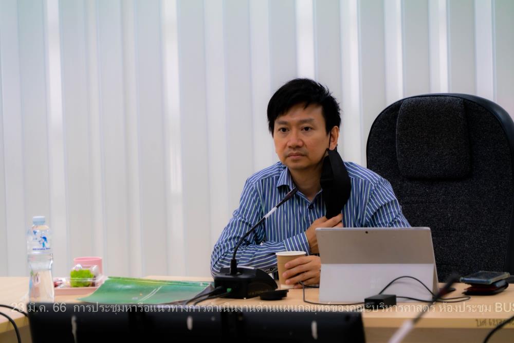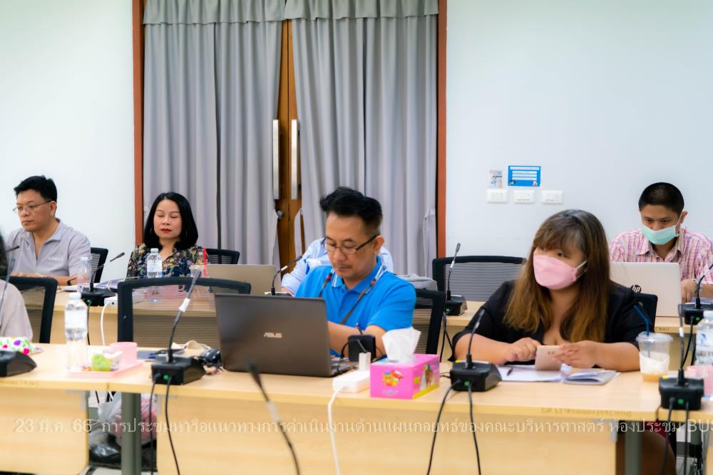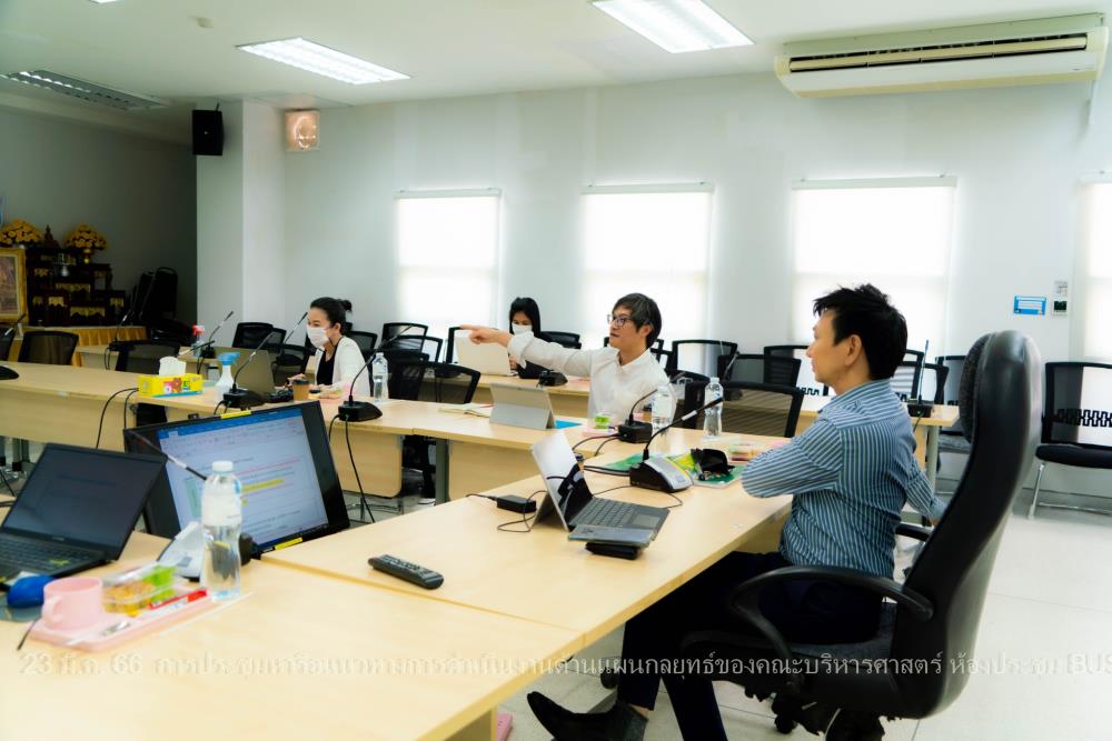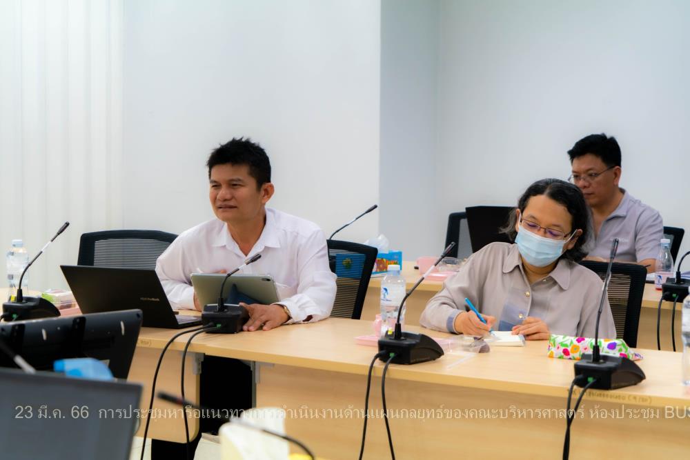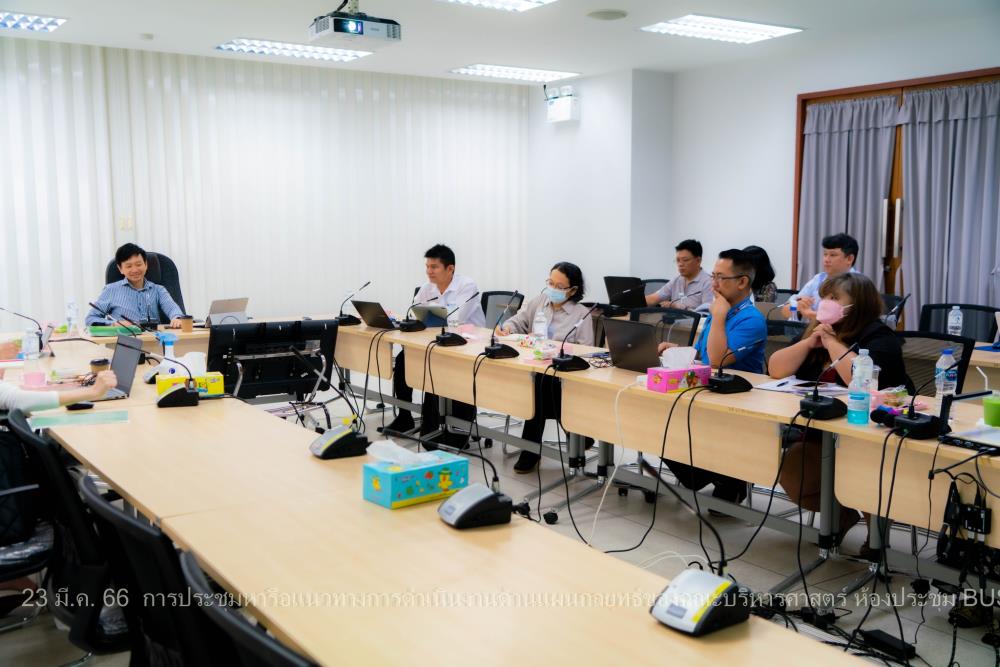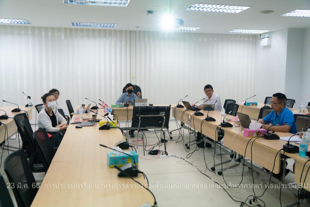 23 มีนาคม 2566 ผู้ช่วยศาสตราจารย์ ดร.อุทัย อันพิมพ์ คณบดี และคณะผู้บริหาร คณะบริหารศาสตร์ ร่วมการประชุมหารือแนวทางการดำเนินงานด้านแผนกลยุทธ์ของคณะบริหารศาสตร์ ห้องประชุม BUS1