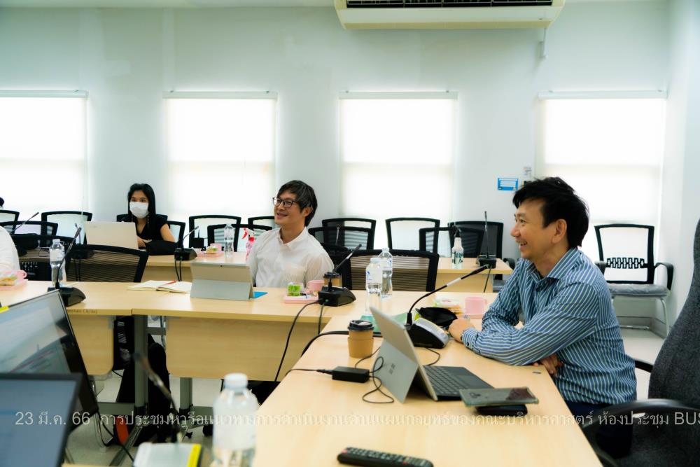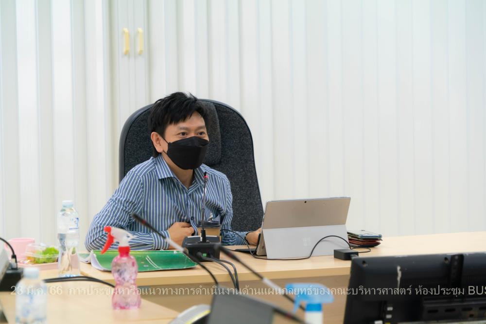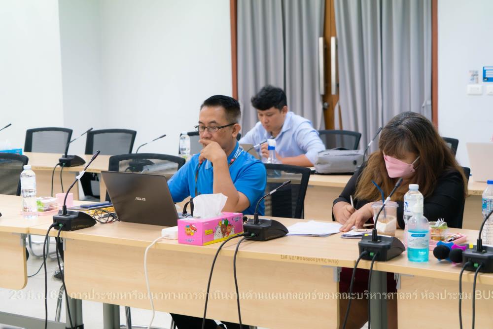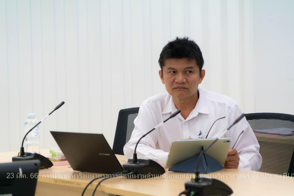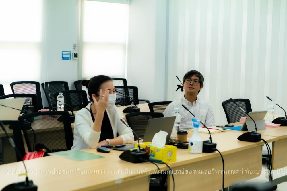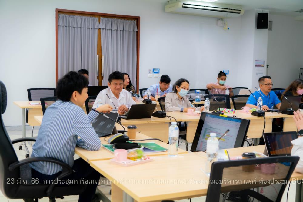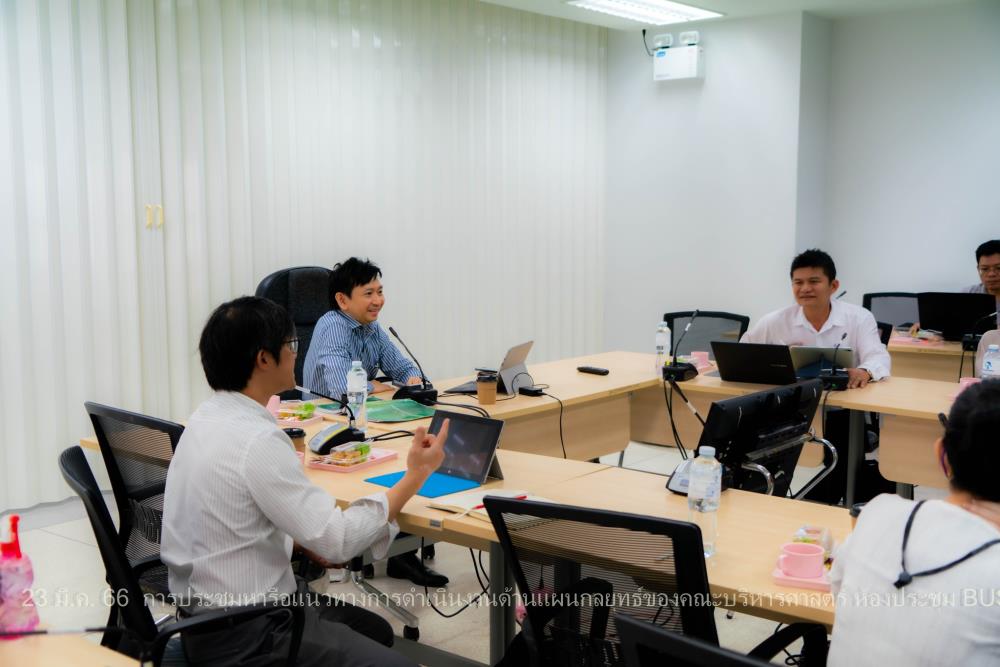 23 มีนาคม 2566 ผู้ช่วยศาสตราจารย์ ดร.อุทัย อันพิมพ์ คณบดี และคณะผู้บริหาร คณะบริหารศาสตร์ ร่วมการประชุมหารือแนวทางการดำเนินงานด้านแผนกลยุทธ์ของคณะบริหารศาสตร์ ห้องประชุม BUS1