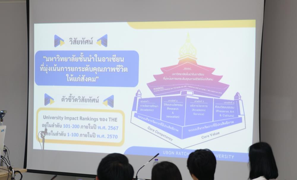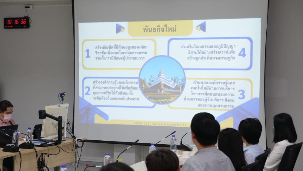 เมื่อวันที่ 21 เมษายน 2566 ผศ.ดร.ชุตินันท์ ประสิทธิ์ภูริปรีชา อธิการบดี พร้อมคณะผู้บริหารมหาวิทยาลัยอุบลราชธานี ได้เข้าพบและร่วมนำเสนอทิศทางและการดำเนินงานของมหาวิทยาลัยที่ผ่านมา โดยมี ผศ.ดร.อุทัย อันพิมพ์ คณบดี พร้อมคณะผู้บริหาร อาจารย์และบุคลากรคณะบริหารศาสตร์ให้การต้อนรับ ในรูปแบบกิจกรรม UBU Roadshow  ผู้บริหารสัญจร คณะบริหารศาสตร์ ณ ห้องประชุม UBS1  อาคารคณะบริหารศาสตร์ (หลังใหม่) ระหว่างเวลา 10.00 – 12.00 น.