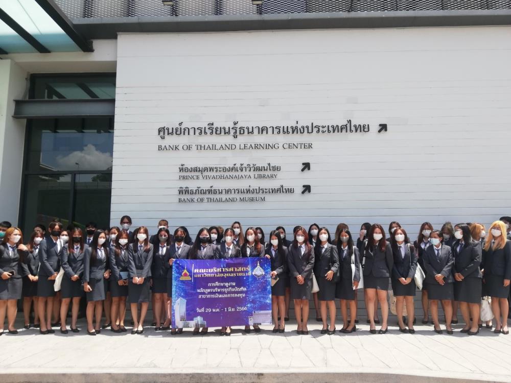 เมื่อวันที่ 29 พฤษภาคม – 1 มิถุนายน 2566 หลักสูตรบริหารธุรกิจบัณฑิต สาขาการเงินและการลงทุน ได้จัดกิจกรรมศึกษาดูงานของนักศึกษา ชั้นปีที่ 2 ณ กรุงเทพมหานคร โดยนักศึกษาได้เข้าเยี่ยมชมองค์กรชั้นนำ พร้อมเข้ารับฟังการบรรยายให้ความรู้ด้านเศรษฐกิจ การเงินและการลงทุน จากผู้บริหารและบุคลากรในหน่วยงานต่างๆ ได้แก่ - พิพิธภัณฑ์เรียนรู้การลงทุน (Investory) และรับฟังการบรรยายในหัวข้อ “เส้นทางวิชาชีพในตลาดทุน” - ธนาคารแห่งประเทศไทย และรับฟังการบรรยายในหัวข้อ “เศรษฐกิจดิจิทัล บทบาทหน้าที่ของธนาคารแห่งประเทศไทย และทักษะด้านการวิเคราะห์ข้อมูลของนักการเงินและการลงทุน” - บริษัทหลักทรัพย์จัดการกองทุนเอ็มเอฟซี จำกัด (มหาชน) และรับฟังการบรรยายในหัวข้อ “เปิดโลกทัศน์การลงทุนในกองทุนและเส้นทางอาชีพด้านการลงทุน” - สำนักงานสภาพัฒนาการเศรษฐกิจและสังคมแห่งชาติ และรับฟังการบรรยายเรื่อง “แผนพัฒนาเศรษฐกิจและสังคมแห่งชาติการพัฒนาที่ยั่งยืนและเศรษฐกิจดิจิทัล” ตลอดจนได้เข้าเยี่ยมชมพิพิธภัณฑ์สุริยานุวัตรเพื่อการพัฒนาประเทศ - สมาคมตลาดตราสารหนี้ไทย และรับฟังการบรรยายเรื่อง “ตลาดตราสารหนี้ การลงทุนและความเสี่ยงในตราสารหนี้” สาขาการเงินและการลงทุนขอขอบพระคุณผู้บริหารและบุคลากรทุกๆ หน่วยงานที่ให้การต้อนรับนักศึกษา ตลอดจนถ่ายทอดความรู้และประสบการณ์อันเป็นประโยชน์ เพื่อนักศึกษาจะนำไปปรับใช้ในการเรียนและการทำงานต่อไป