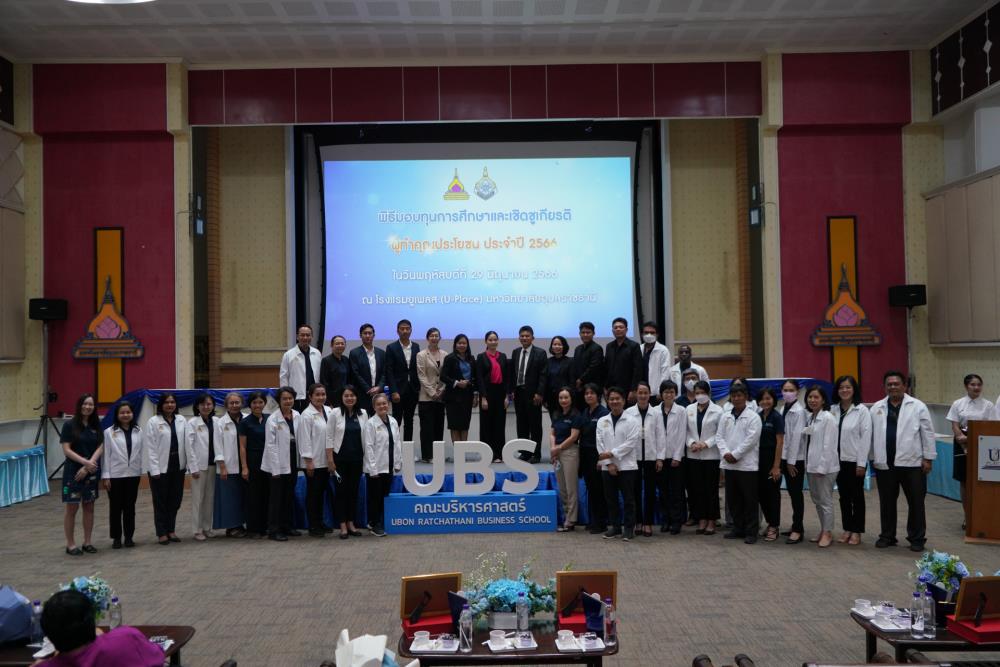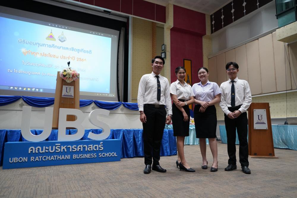 คณะบริหารศาสตร์ จัดกิจกรรมมอบโล่และเกียรติบัตรเชิดชูเกียรติในพิธีมอบทุนการศึกษาและเชิดชูเกียรติผู้ทำคุณประโยชน์ ประจำปี 2566 ในวันที่ 29 มิถุนายน 2566 เวลา 13.30 น. ณ โรงแรมยูเพลส โดยมี ผศ.ดร.อุทัย อันพิมพ์ คณบดี คณะบริหารศาสตร์เป็นประธานในพิธี โดยมีรายนาม ศิษย์เก่าดีเด่น จำนวน 4 ท่าน ได้แก่ ลำดับที่ 1 คุณละเอียด มธุรส ศิษย์เก่าดีเด่น ด้านบริหารภาครัฐ ลำดับที่ 2 คุณสุวิชา มุละสิวะ ศิษย์เก่าดีเด่น ด้านบริหารภาคเอกชน ลำดับที่ 3 คุณมนัสชญาณ์ อู่สมบัติชัย ศิษย์เก่าดีเด่น ด้านบริหารภาคเอกชน ลำดับที่ 4 คุณภาณุวิชญ์ โพธิ์งาม ศิษย์เก่าดีเด่นรุ่นใหม่ นักศึกษารับทุนการศึกษา (ทุนเรียนดี) ประจำปี 2566 จำนวน 9 ทุน รวม 180,000 บาท ทุนการศึกษาจากผู้มีจิตศรัทธา (ทุนการศึกษาฐานิสร์สุภางค์ ) จำนวน 2 ทุน รวม 10,000 บาท นักศึกษาได้รางวัลจากากรประกวดแข่งขัน ประจำปีการศึกษา 2565 เข้ารับเกียรติบัตรเชิดชูเกียรติ จำนวน 37 คน คณะกรรมการสโมสรนักศึกษา ประจำปีการศึกษา 2565 เข้ารับเกียรติบัตรเชิดชูเกียรติ จำนวน 8 คน