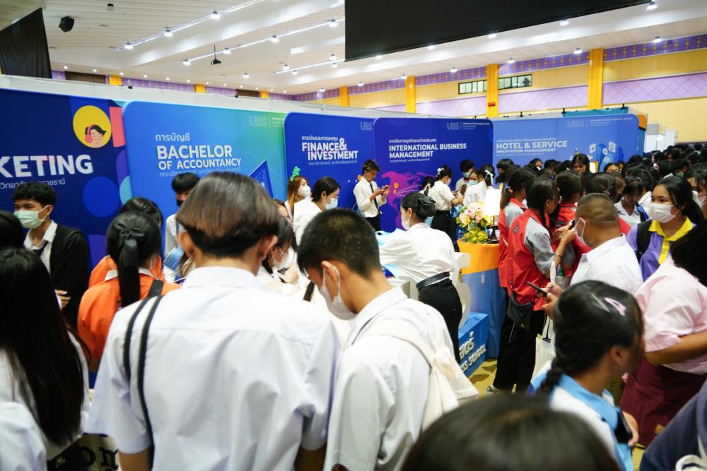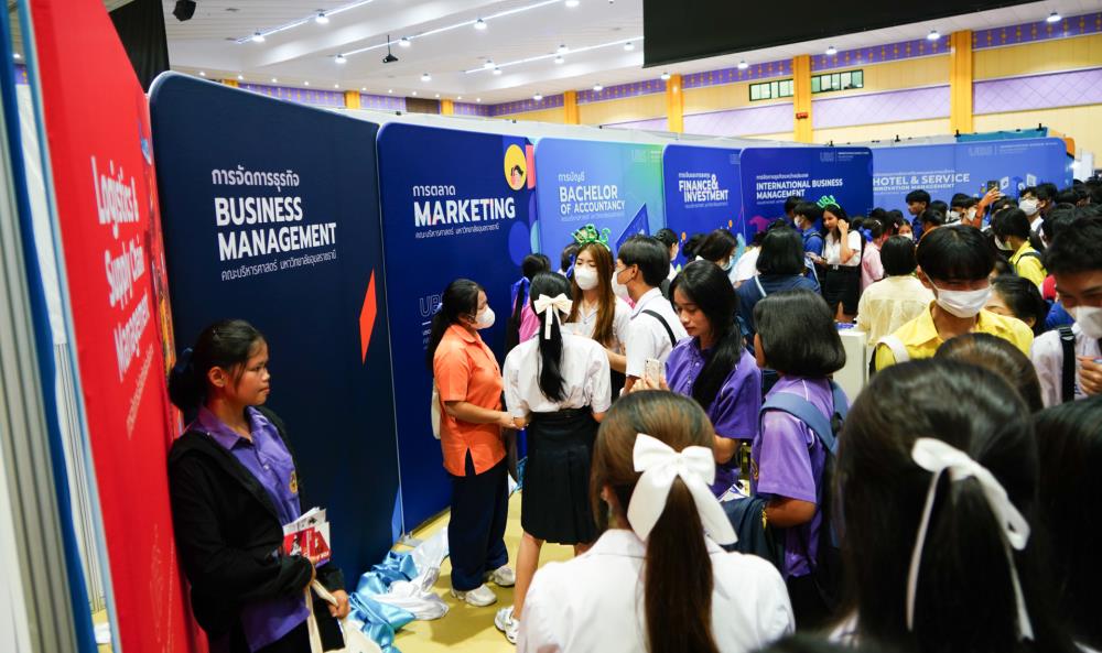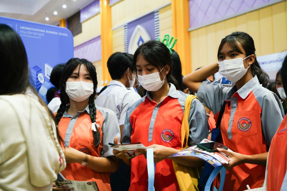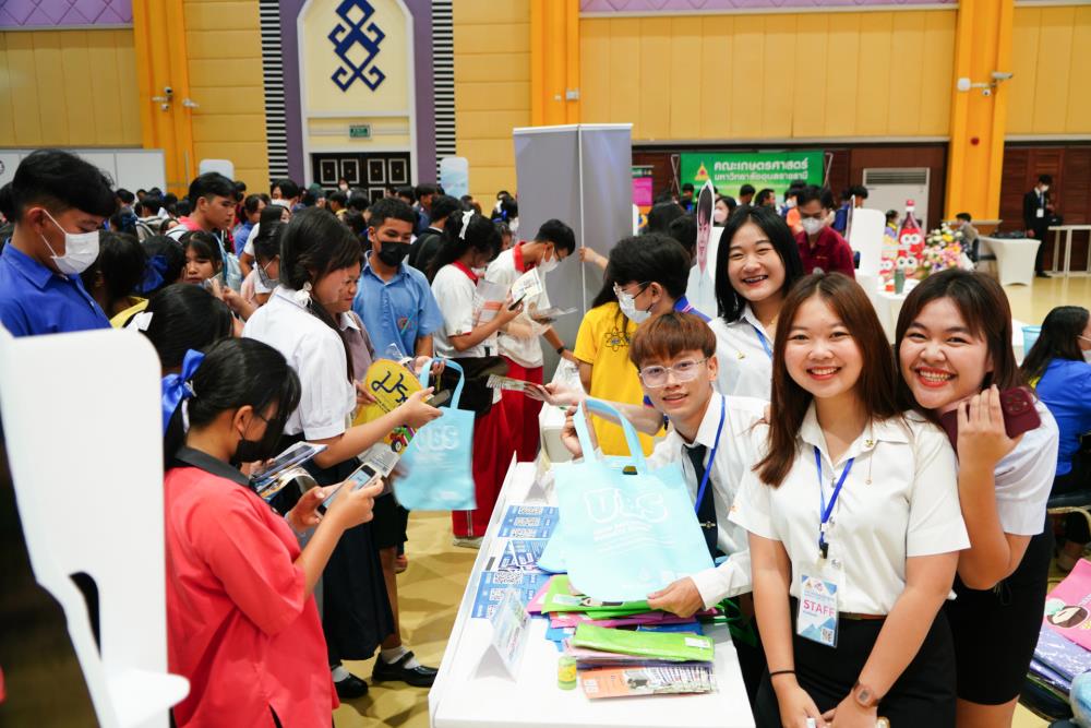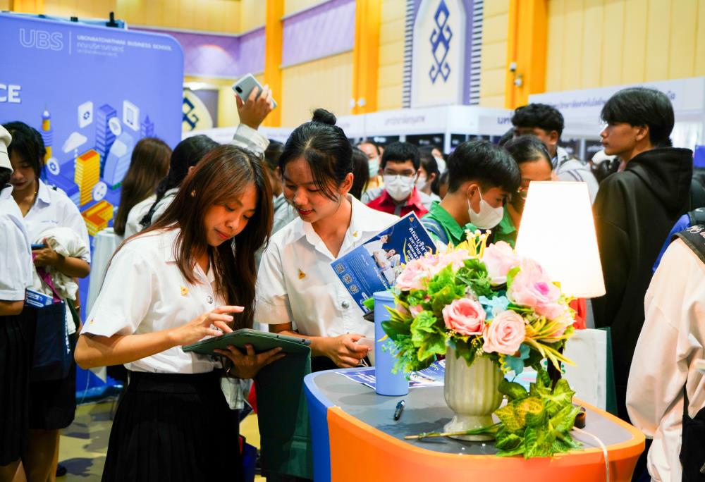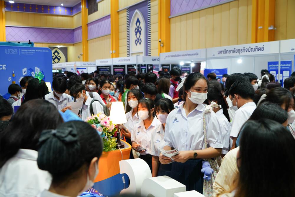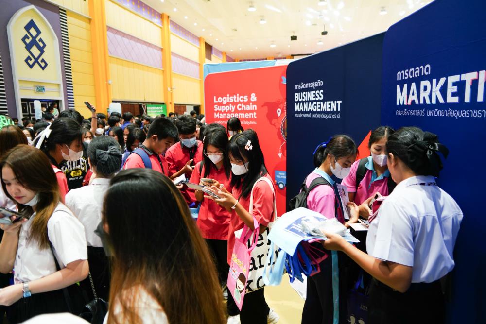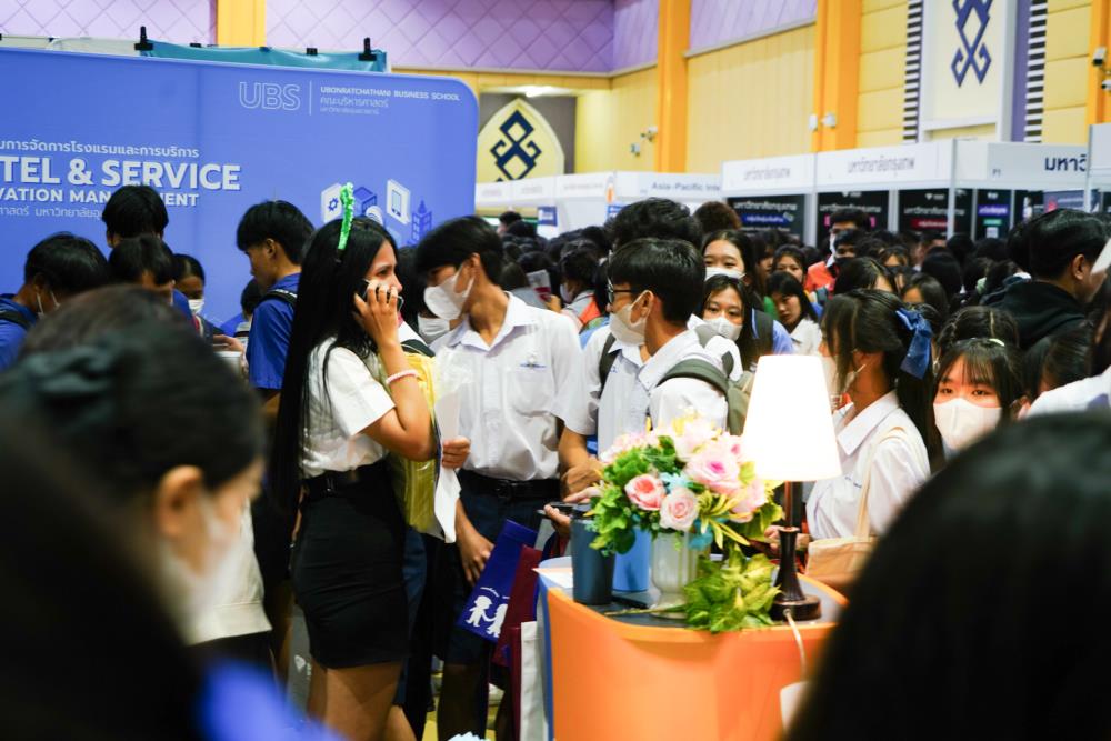 บรรยากาศ งานนิทรรศการตลาดนัดหลักสูตรอุดมศึกษา ครั้งที่ 25 ระหว่างวันที่ 12-13 กรกฎาคม 2566 ณ อาคารเฉลิมพระเกียรติ 7 รอบ พระชนมพรรษา มหาวิทยาลัยอุบลราชธานี ทั้งนี้ มี ครู-นักเรียน และผู้สนใจ เข้าร่วมจำนวนมาก ในงานมีการออกบูธนิทรรศการ จากสถาบันอุดมศึกษากว่า 50 สถาบันชั้นนำทั่วประเทศ รับฟังการบรรยายพิเศษ การเสวนา การแนะแนวหลักสูตรการเรียนการสอน และกิจกรรมการแสดงบนเวที สนุกสนานกับกิจกรรมการเล่นเกมส์แจกของรางวัล/ของที่ระลึกมากมาย