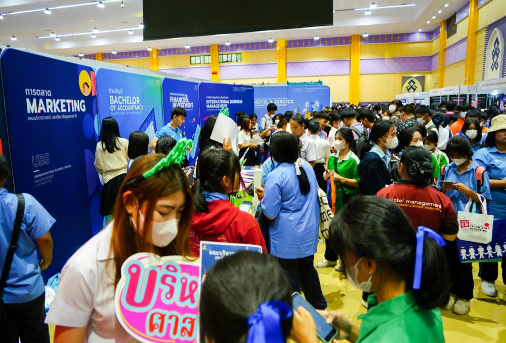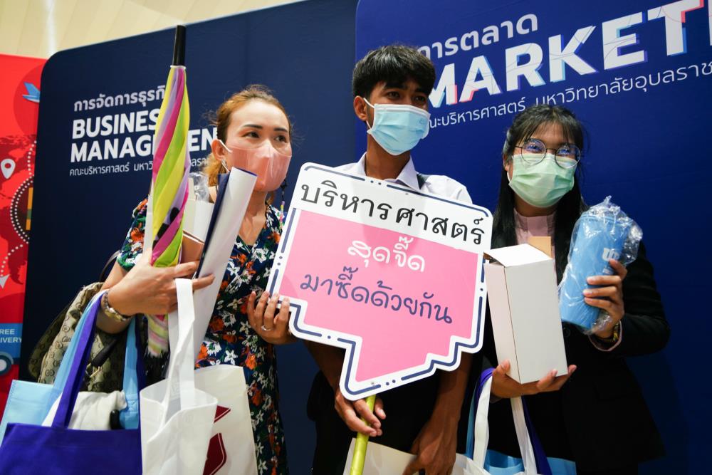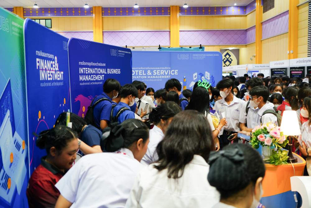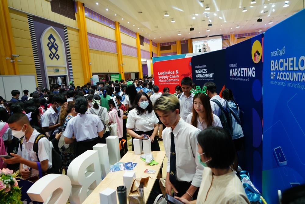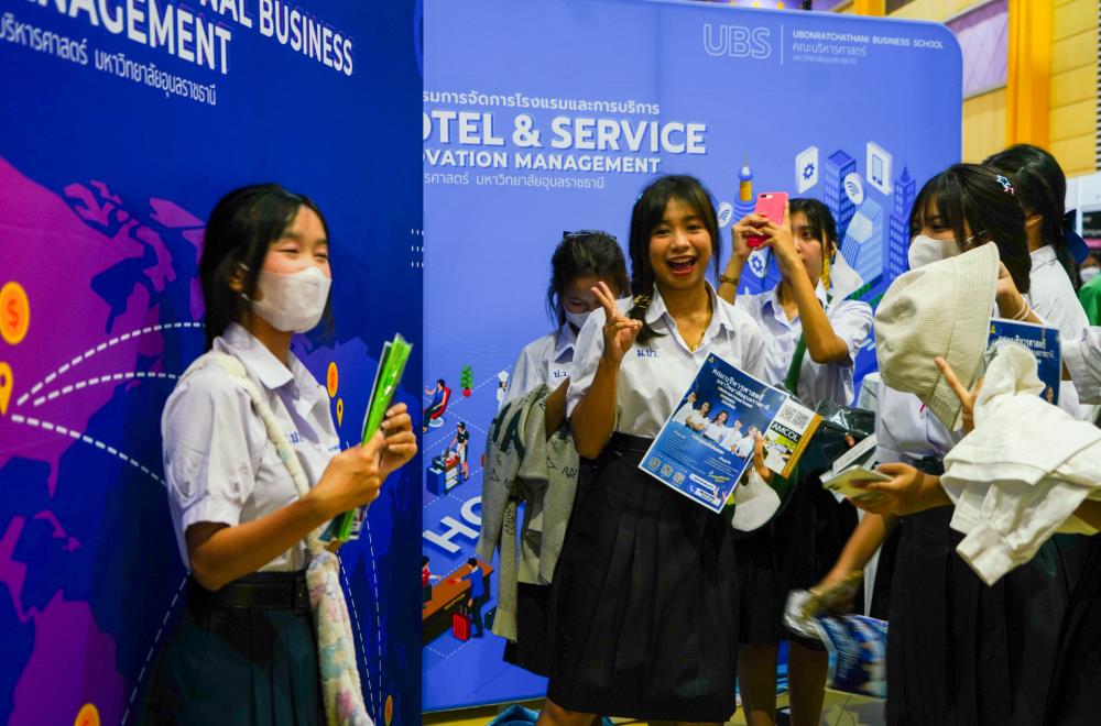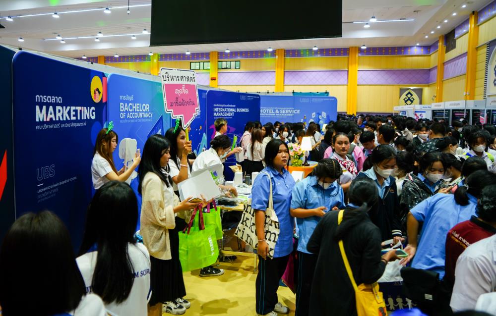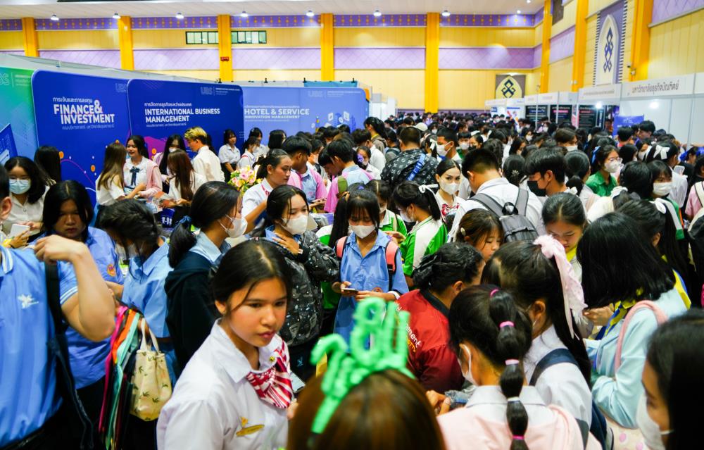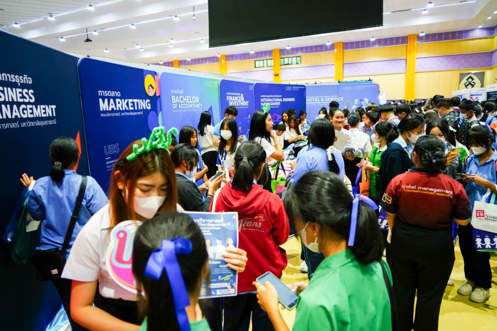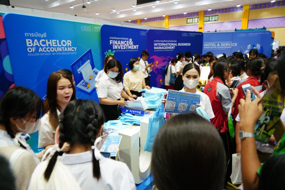 บรรยากาศ งานนิทรรศการตลาดนัดหลักสูตรอุดมศึกษา ครั้งที่ 25 ระหว่างวันที่ 12-13 กรกฎาคม 2566 ณ อาคารเฉลิมพระเกียรติ 7 รอบ พระชนมพรรษา มหาวิทยาลัยอุบลราชธานี ทั้งนี้ มี ครู-นักเรียน และผู้สนใจ เข้าร่วมจำนวนมาก ในงานมีการออกบูธนิทรรศการ จากสถาบันอุดมศึกษากว่า 50 สถาบันชั้นนำทั่วประเทศ รับฟังการบรรยายพิเศษ การเสวนา การแนะแนวหลักสูตรการเรียนการสอน และกิจกรรมการแสดงบนเวที สนุกสนานกับกิจกรรมการเล่นเกมส์แจกของรางวัล/ของที่ระลึกมากมาย