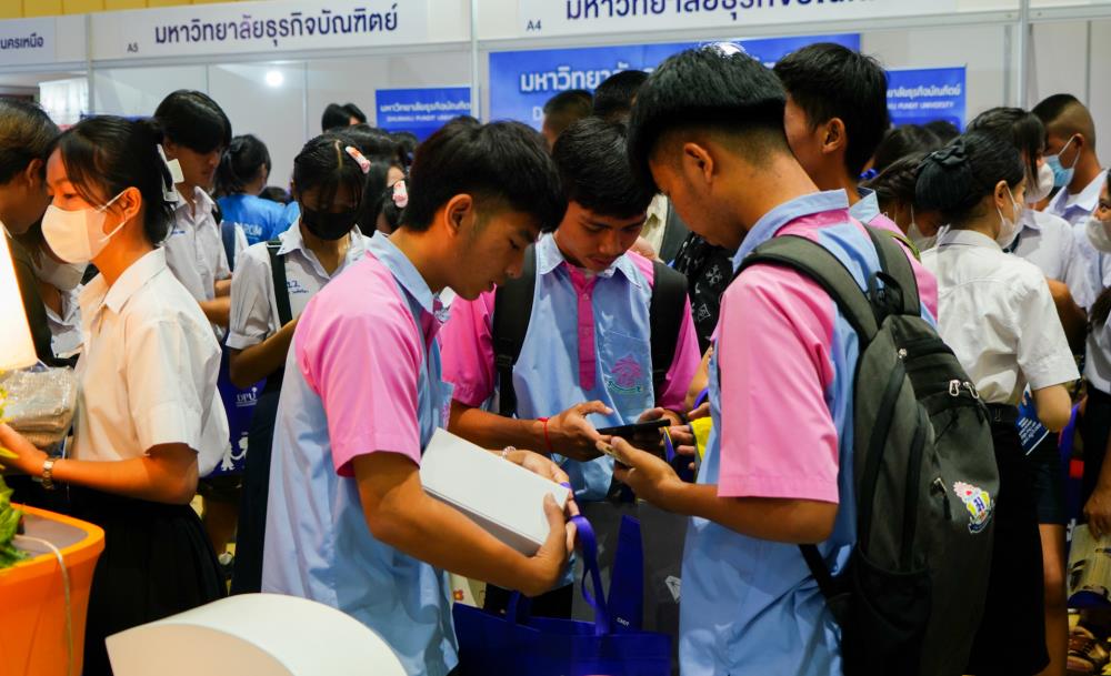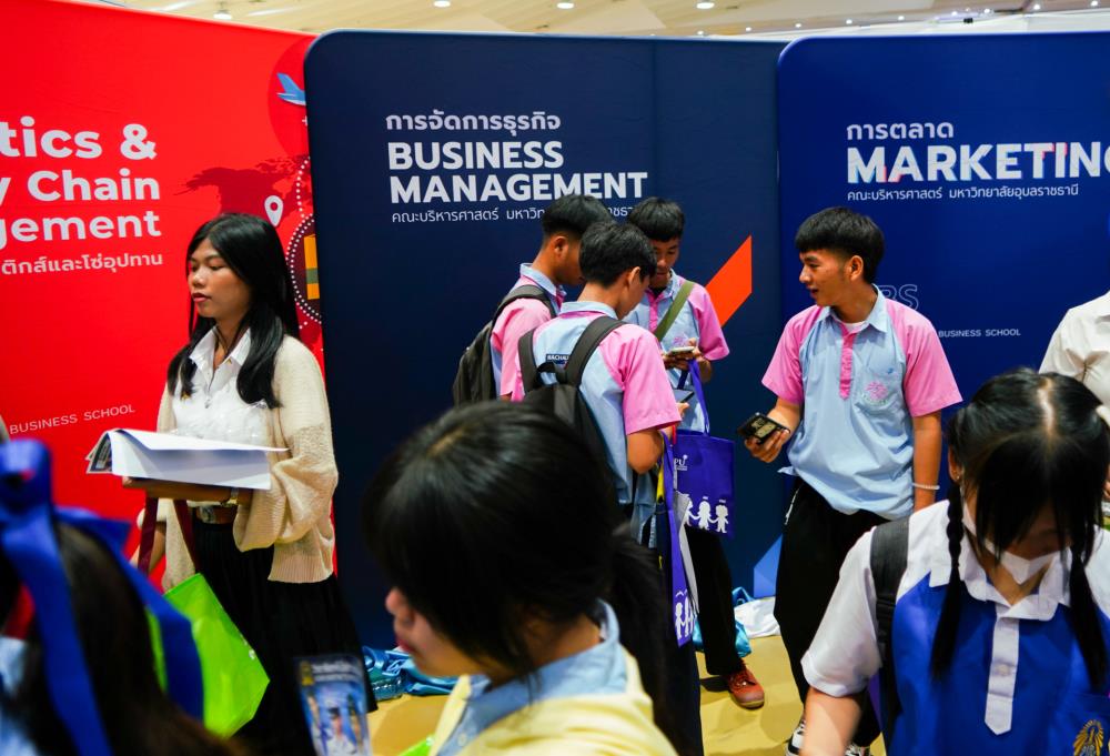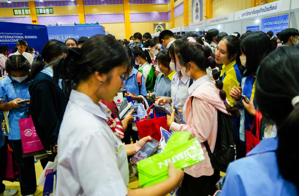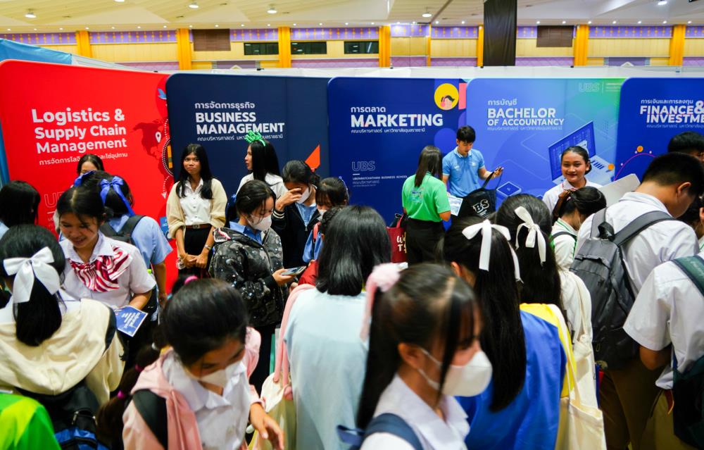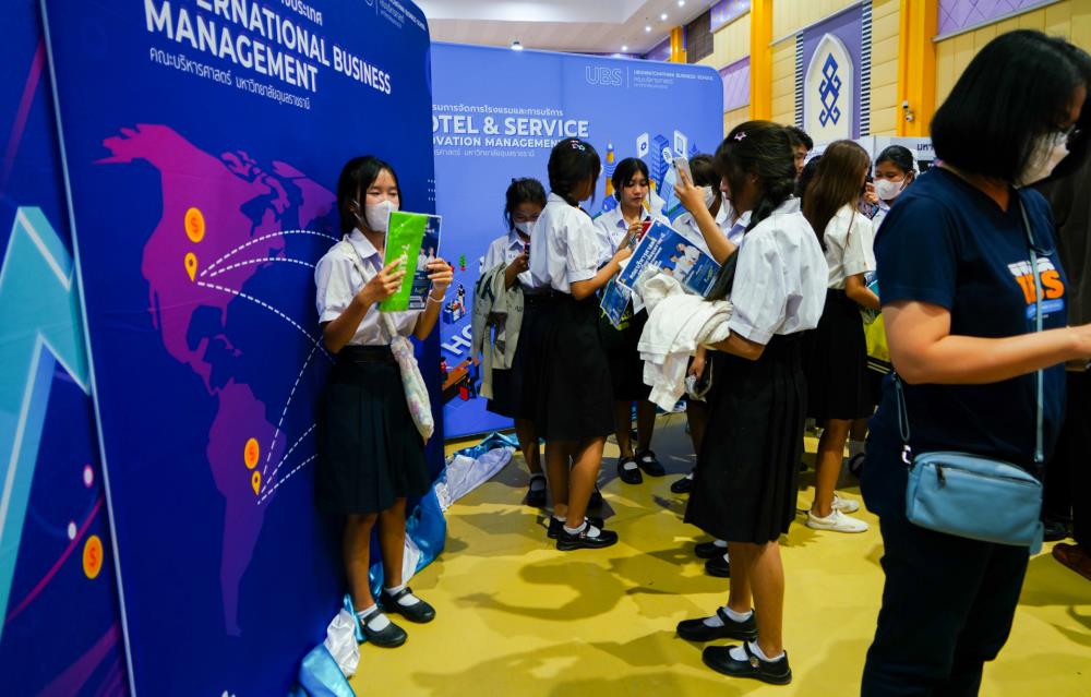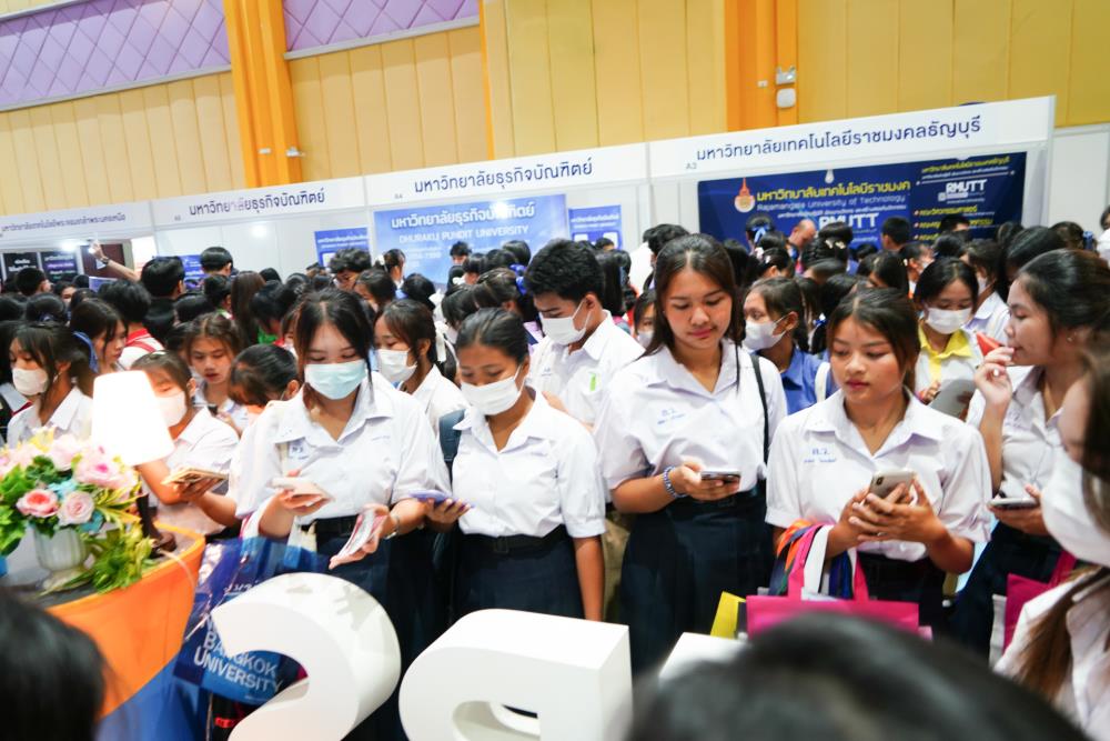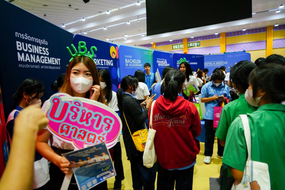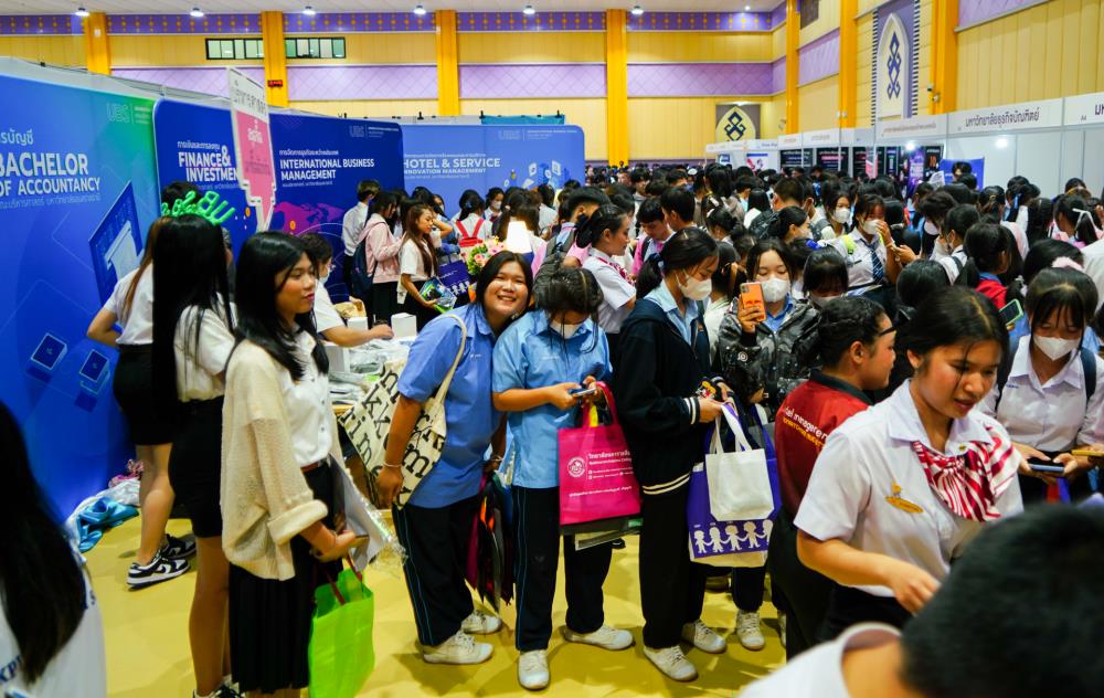 บรรยากาศ งานนิทรรศการตลาดนัดหลักสูตรอุดมศึกษา ครั้งที่ 25 ระหว่างวันที่ 12-13 กรกฎาคม 2566 ณ อาคารเฉลิมพระเกียรติ 7 รอบ พระชนมพรรษา มหาวิทยาลัยอุบลราชธานี ทั้งนี้ มี ครู-นักเรียน และผู้สนใจ เข้าร่วมจำนวนมาก ในงานมีการออกบูธนิทรรศการ จากสถาบันอุดมศึกษากว่า 50 สถาบันชั้นนำทั่วประเทศ รับฟังการบรรยายพิเศษ การเสวนา การแนะแนวหลักสูตรการเรียนการสอน และกิจกรรมการแสดงบนเวที สนุกสนานกับกิจกรรมการเล่นเกมส์แจกของรางวัล/ของที่ระลึกมากมาย