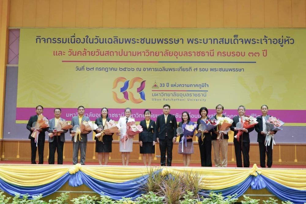 คณะบริหารศาสตร์ขอแสดงความยินดีกับบุคลากร เนื่องในโอกาสที่ได้รับพระราชทานเครื่องราชอิสริยาภรณ์ จำนวน 2 ท่าน ได้แก่ อาจารย์วรารัตน์ บุญแฝง รับตัวเครื่องราชอิสริยาภรณ์มงกุฎไทย ชั้นที่ ๓ ตริตาภรณ์ ผศ.ดร.พีชญาดา พื้นผา รับเครื่องราชอิสริยาภรณ์ ชั้นจัตุรถาภรณ์ ช้างเผือก รางวัลบุคลากรดีเด่นประจำปี 2565 จำนวน 3 ท่าน ได้แก่ อาจารย์ ดร. ธรรมวิมล สุขเสริม คุณสันติ เจริญบุญญา คุณกัญญ์ณัชพร ศรีสร้อย รางวัลผู้ที่สร้างชื่อเสียงให้มหาวิทยาลัยด้านกีฬาประจำปี 2566 จำนวน 2 ท่าน ได้แก่ อาจารย์ ดร.สรินทิพย์ ทวีเดช อาจารย์ ดร. อรุณรัตน์ เศวตธรรม ในวันคล้ายวันสถาปนามหาวิทยาลัยอุบลราชธานี ครบรอบ 33 ปี 27 กรกฏาคม 2566