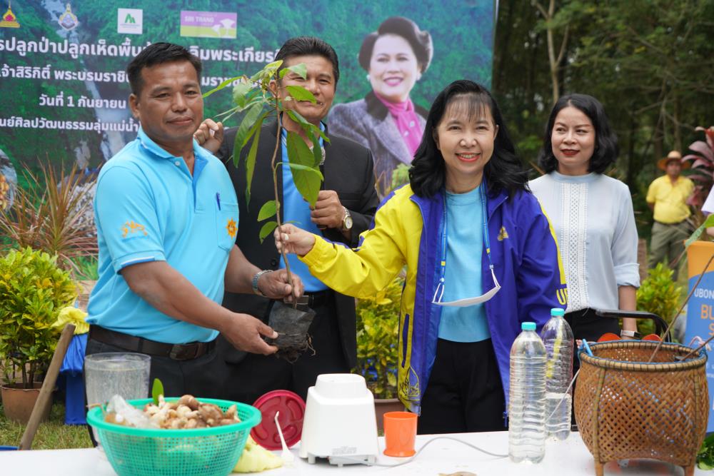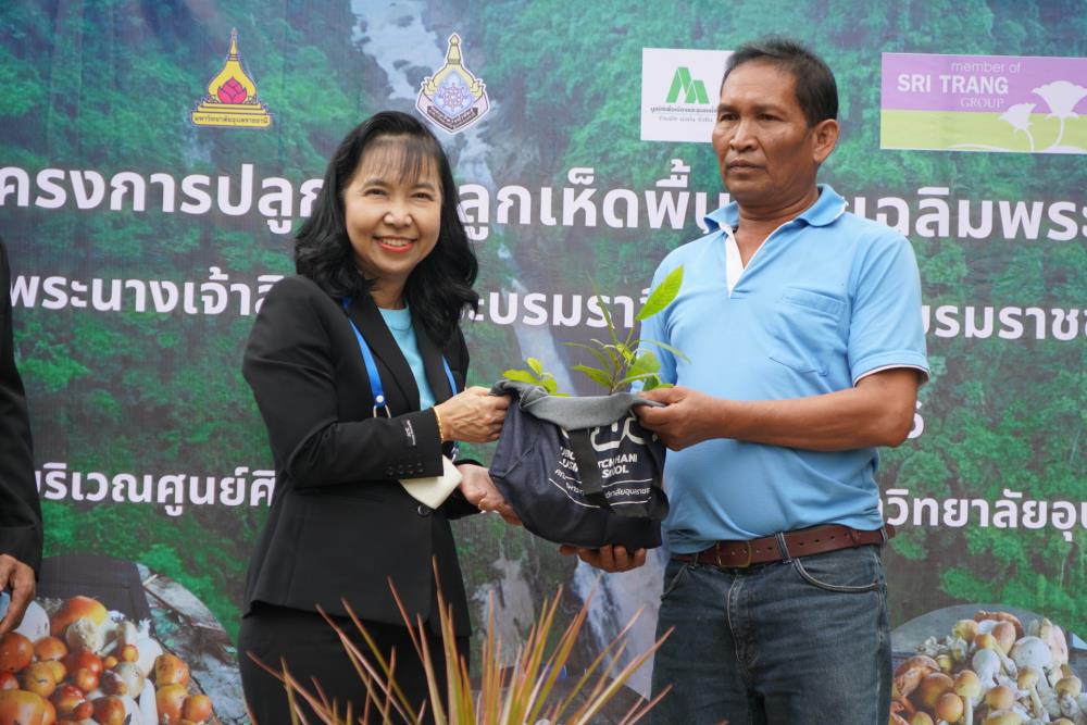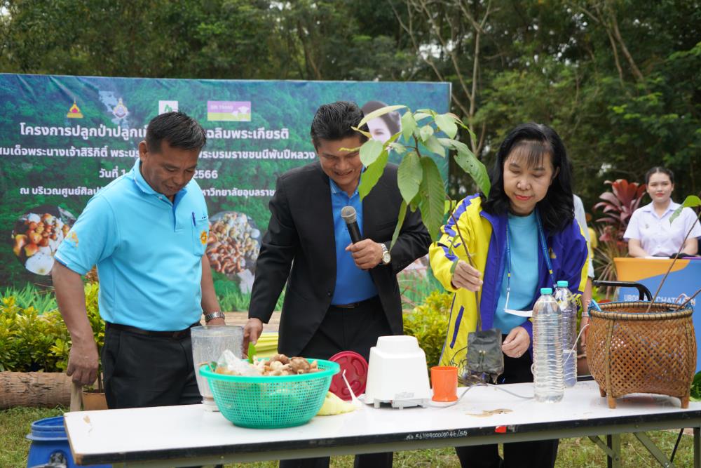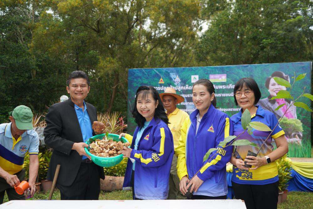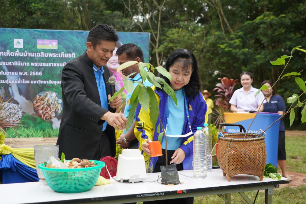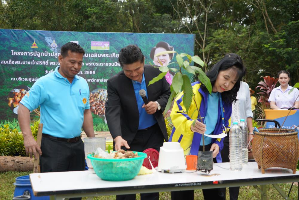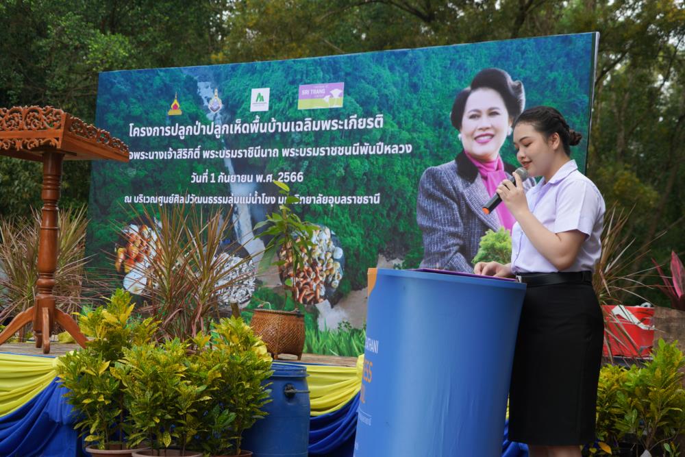 วันที่ 1 ก.ย. 66 มหาวิทยาลัยอุบลราชธานี โดย ผศ.ดร.ชุตินันท์ ประสิทธิ์ภูริปรีชา อธิการบดี ดร.จรวยพร แสนทวีสุข รองอธิการบดีฝ่ายพัฒนานักศึกษา ผศ.ดร.กฤษณ์ ศรีวรมาศ รองอธิการบดีฝ่ายบริหารกายภาพและสิ่งแวดล้อม ผศ.ดร.ปิยณัฐ สร้อยคำ ผู้ช่วยอธิการบดีฝ่ายสื่อสารองค์กรและพันธกิจสัมพันธ์ ผศ.ดร.ถนัดกิจ ชารีรัตน์ ผู้ช่วยอธิการบดีฝ่ายพัฒนาโครงสร้างพื้นฐานและภูมิทัศน์ ผศ.ดร.อุทัย อันพิมพ์ คณบดีคณะบริหารศาสตร์ ผศ.ดร.สงวน ธานี คณบดีคณะพยาบาลศาสตร์ พร้อมด้วยคณะผู้บริหาร โดยความร่วมมือกับภาคีเครือข่าย บริษัท ศรีตรังแอโกรอินดัสทรี จำกัด (มหาชน), มูลนิธิเพื่อเมืองและชุมชนยั่งยืน ชุมชนรอบมหาวิทยาลัย หน่วยงานภายในมหาวิทยาลัยอุบลราชธานี อาจารย์ บุคลากร และนักศึกษา ได้ดำเนิน “โครงการปลูกป่าปลูกเห็ดพื้นบ้านเฉลิมพระเกียรติ สมเด็จพระนางเจ้าสิริกิติ์ พระบรมราชินีนาถ พระบรมราชชนนีพันปีหลวง” โดยร่วมทำการปลูกต้นยางนา จำนวน 999 ต้น ณ บริเวณทิศใต้ ศูนย์ศิลปวัฒนธรรมลุ่มน้ำโขง มหาวิทยาลัยอุบลราชธานี และมีการสาธิตให้ความรู้การปลูกป่าปลูกเห็ดพื้นบ้าน ณ ศูนย์ศิลปวัฒนธรรมลุ่มน้ำโขง มหาวิทยาลัยอุบลราชธานี ทั้งนี้ ผศ.ดร.อุทัย อันพิมพ์ คณบดี คณะบริหารศาสตร์ ได้สาธิตการบรรจุเชื้อเห็ด 7 ชนิดลงในต้นกล้ายางนา เพื่อเป็นแหล่งอาหารในอนาคตให้กับผู้เข้าร่วมปลูกป่าในครั้งนี้ด้วย