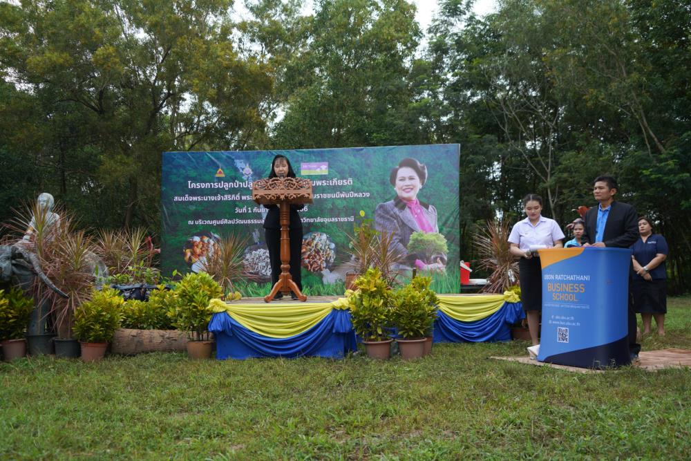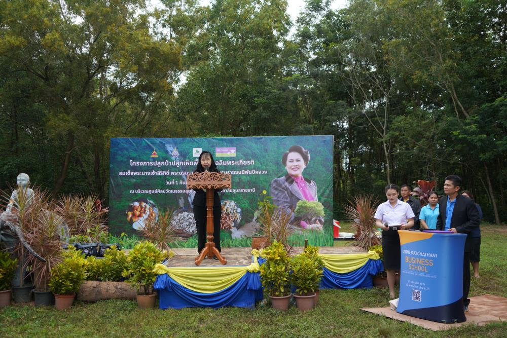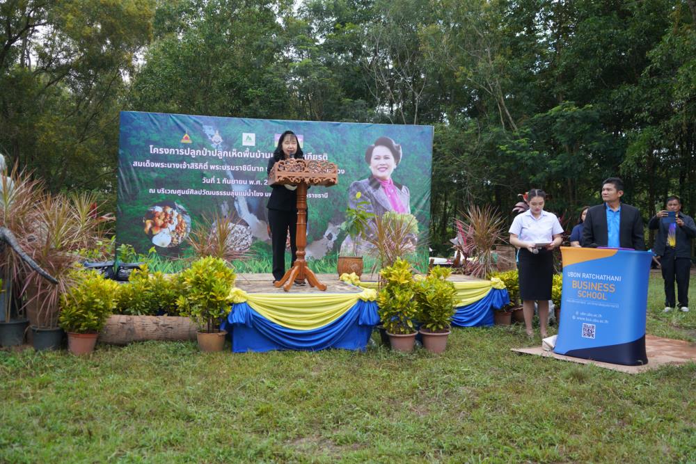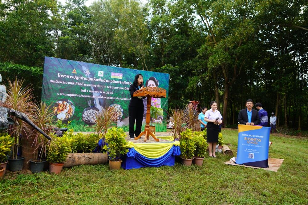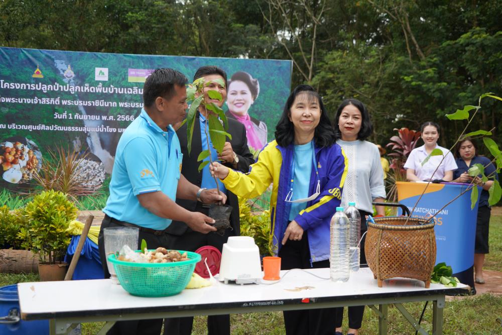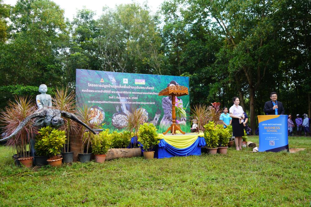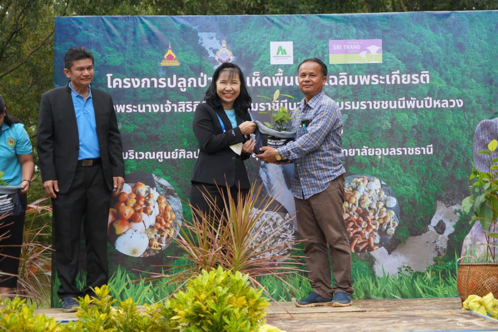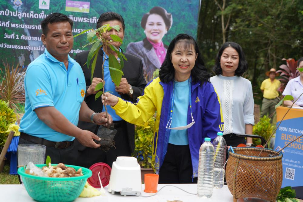วันที่ 1 ก.ย. 66 มหาวิทยาลัยอุบลราชธานี โดย ผศ.ดร.ชุตินันท์ ประสิทธิ์ภูริปรีชา อธิการบดี ดร.จรวยพร แสนทวีสุข รองอธิการบดีฝ่ายพัฒนานักศึกษา ผศ.ดร.กฤษณ์ ศรีวรมาศ รองอธิการบดีฝ่ายบริหารกายภาพและสิ่งแวดล้อม ผศ.ดร.ปิยณัฐ สร้อยคำ ผู้ช่วยอธิการบดีฝ่ายสื่อสารองค์กรและพันธกิจสัมพันธ์ ผศ.ดร.ถนัดกิจ ชารีรัตน์ ผู้ช่วยอธิการบดีฝ่ายพัฒนาโครงสร้างพื้นฐานและภูมิทัศน์ ผศ.ดร.อุทัย อันพิมพ์ คณบดีคณะบริหารศาสตร์ ผศ.ดร.สงวน ธานี คณบดีคณะพยาบาลศาสตร์ พร้อมด้วยคณะผู้บริหาร โดยความร่วมมือกับภาคีเครือข่าย บริษัท ศรีตรังแอโกรอินดัสทรี จำกัด (มหาชน), มูลนิธิเพื่อเมืองและชุมชนยั่งยืน ชุมชนรอบมหาวิทยาลัย หน่วยงานภายในมหาวิทยาลัยอุบลราชธานี อาจารย์ บุคลากร และนักศึกษา ได้ดำเนิน “โครงการปลูกป่าปลูกเห็ดพื้นบ้านเฉลิมพระเกียรติ สมเด็จพระนางเจ้าสิริกิติ์ พระบรมราชินีนาถ พระบรมราชชนนีพันปีหลวง” โดยร่วมทำการปลูกต้นยางนา จำนวน 999 ต้น ณ บริเวณทิศใต้ ศูนย์ศิลปวัฒนธรรมลุ่มน้ำโขง มหาวิทยาลัยอุบลราชธานี และมีการสาธิตให้ความรู้การปลูกป่าปลูกเห็ดพื้นบ้าน ณ ศูนย์ศิลปวัฒนธรรมลุ่มน้ำโขง มหาวิทยาลัยอุบลราชธานี ทั้งนี้ ผศ.ดร.อุทัย อันพิมพ์ คณบดี คณะบริหารศาสตร์ ได้สาธิตการบรรจุเชื้อเห็ด 7 ชนิดลงในต้นกล้ายางนา เพื่อเป็นแหล่งอาหารในอนาคตให้กับผู้เข้าร่วมปลูกป่าในครั้งนี้ด้วย