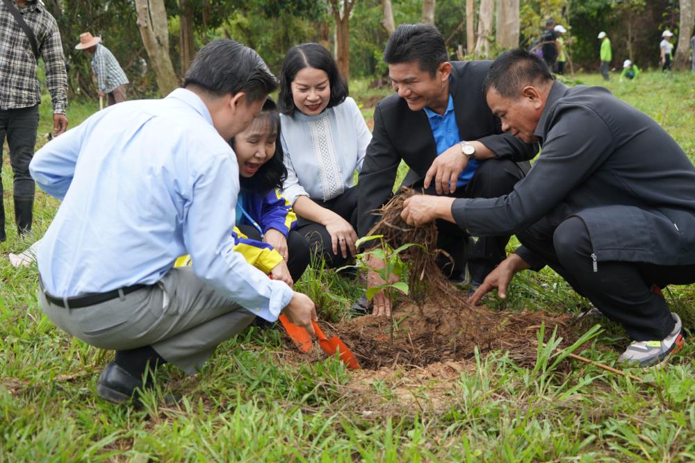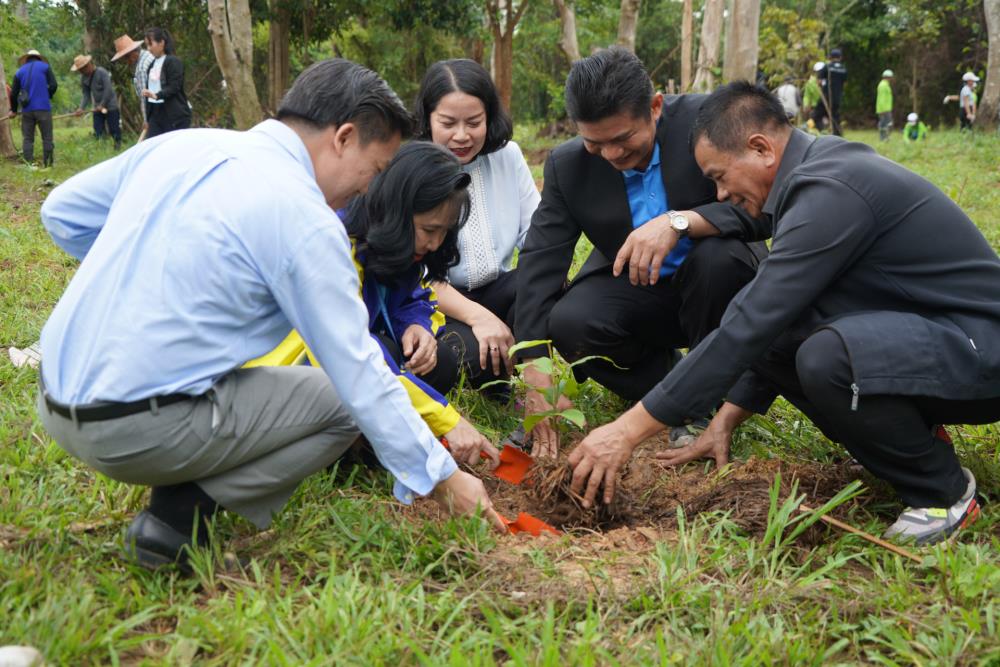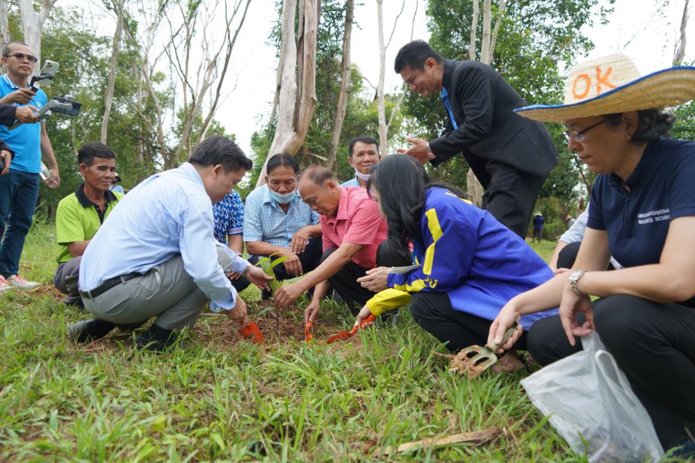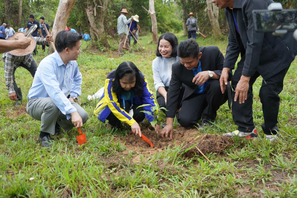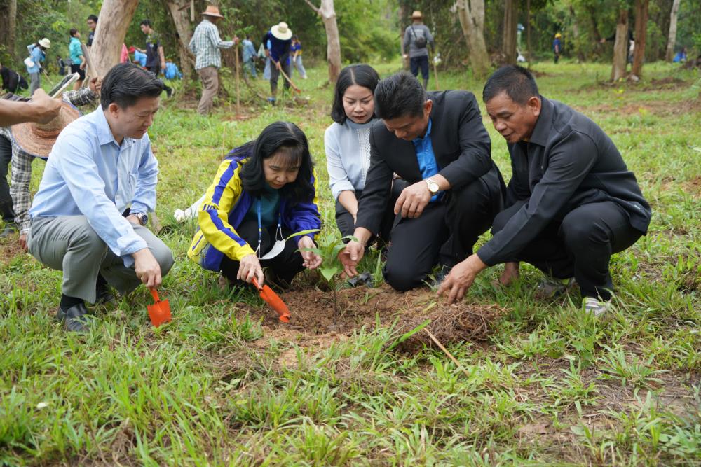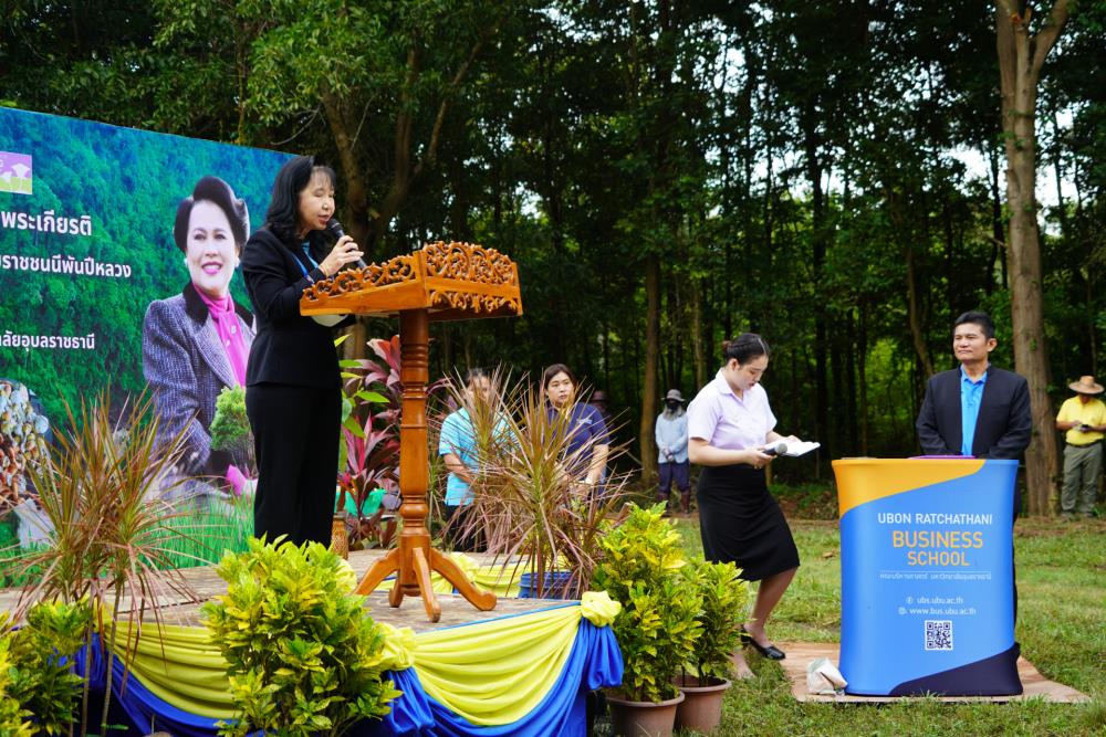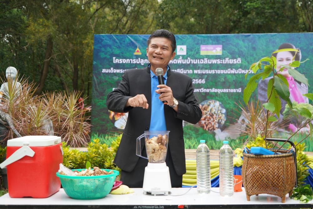 วันที่ 1 ก.ย. 66 มหาวิทยาลัยอุบลราชธานี โดย ผศ.ดร.ชุตินันท์ ประสิทธิ์ภูริปรีชา อธิการบดี ดร.จรวยพร แสนทวีสุข รองอธิการบดีฝ่ายพัฒนานักศึกษา ผศ.ดร.กฤษณ์ ศรีวรมาศ รองอธิการบดีฝ่ายบริหารกายภาพและสิ่งแวดล้อม ผศ.ดร.ปิยณัฐ สร้อยคำ ผู้ช่วยอธิการบดีฝ่ายสื่อสารองค์กรและพันธกิจสัมพันธ์ ผศ.ดร.ถนัดกิจ ชารีรัตน์ ผู้ช่วยอธิการบดีฝ่ายพัฒนาโครงสร้างพื้นฐานและภูมิทัศน์ ผศ.ดร.อุทัย อันพิมพ์ คณบดีคณะบริหารศาสตร์ ผศ.ดร.สงวน ธานี คณบดีคณะพยาบาลศาสตร์ พร้อมด้วยคณะผู้บริหาร โดยความร่วมมือกับภาคีเครือข่าย บริษัท ศรีตรังแอโกรอินดัสทรี จำกัด (มหาชน), มูลนิธิเพื่อเมืองและชุมชนยั่งยืน ชุมชนรอบมหาวิทยาลัย หน่วยงานภายในมหาวิทยาลัยอุบลราชธานี อาจารย์ บุคลากร และนักศึกษา ได้ดำเนิน “โครงการปลูกป่าปลูกเห็ดพื้นบ้านเฉลิมพระเกียรติ สมเด็จพระนางเจ้าสิริกิติ์ พระบรมราชินีนาถ พระบรมราชชนนีพันปีหลวง” โดยร่วมทำการปลูกต้นยางนา จำนวน 999 ต้น ณ บริเวณทิศใต้ ศูนย์ศิลปวัฒนธรรมลุ่มน้ำโขง มหาวิทยาลัยอุบลราชธานี และมีการสาธิตให้ความรู้การปลูกป่าปลูกเห็ดพื้นบ้าน ณ ศูนย์ศิลปวัฒนธรรมลุ่มน้ำโขง มหาวิทยาลัยอุบลราชธานี ทั้งนี้ ผศ.ดร.อุทัย อันพิมพ์ คณบดี คณะบริหารศาสตร์ ได้สาธิตการบรรจุเชื้อเห็ด 7 ชนิดลงในต้นกล้ายางนา เพื่อเป็นแหล่งอาหารในอนาคตให้กับผู้เข้าร่วมปลูกป่าในครั้งนี้ด้วย