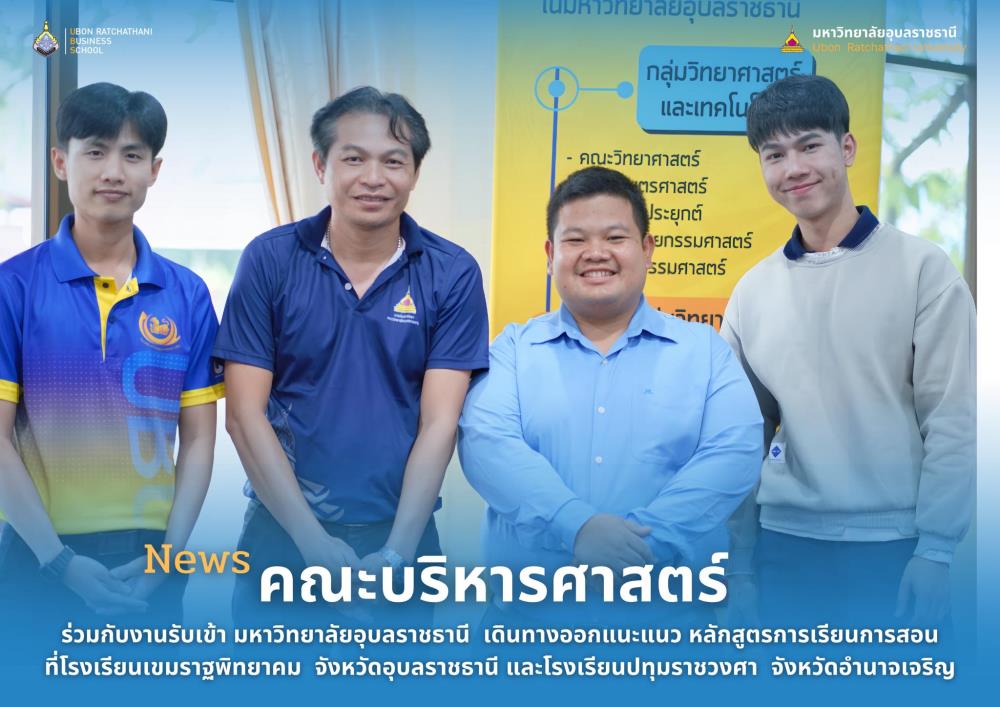 วันที่ 14 กันยายน 2566 คณะบริหารศาสตร์ มหาวิทยาลัยอุบลราชธานี ร่วมกับงานรับเข้า มหาวิทยาลัยอุบลราชธานี จัดกิจกรรมแนะแนวหลักสูตรการศึกษา ของมหาวิทยาลัยอุบลราชธานี ที่โรงเรียนเขมราฐพิทยาคม จังหวัดอุบลราชธานี และโรงเรียนปทุมราชวงศา จังหวัดอำนาจเจริญ โดยมีวัตถุประสงค์ เพื่อประชาสัมพันธ์หลักสูตรการเรียนการสอน ที่มีอยู่ในมหาวิทยาลัยอุบลราชธานี โดยช่วงเช้าได้เดินทางไปจัดกิจกรรมที่ โรงเรียนเขมราฐพิทยาคม และช่วงบ่ายจะเป็นโรงเรียนปทุมราชวงศา