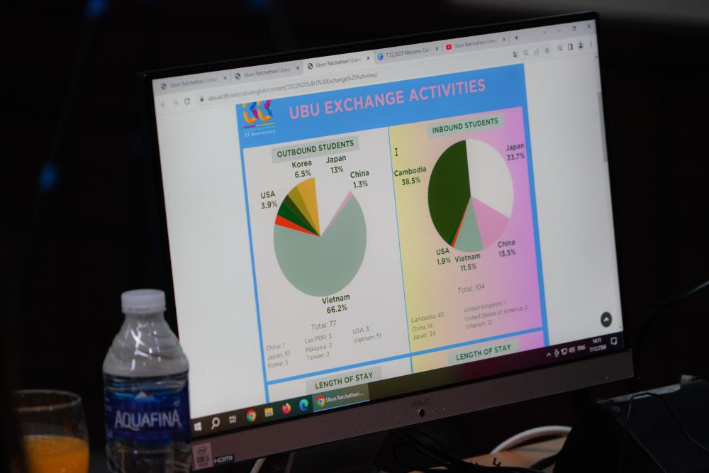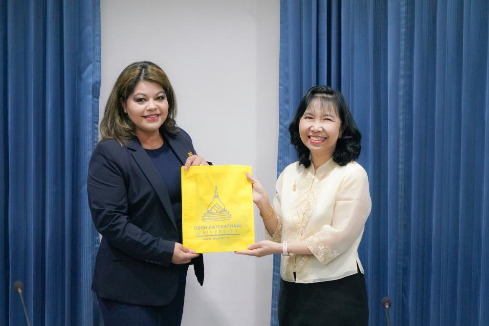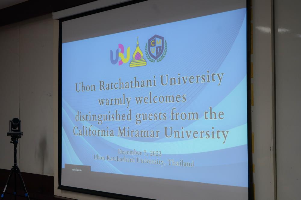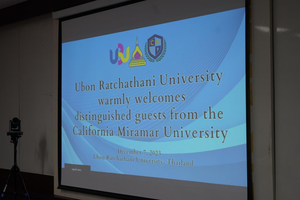 วันที่ 7 ธันวาคม 2566 มหาวิทยาลัยอุบลราชธานี โดย ผู้ช่วยศาสตราจารย์ดร.ชุตินันท์ ประสิทธิ์ภูริปรีชา อธิการบดี พร้อมด้วย ผู้ช่วยศาสตราจารย์ ดร.อรนุช ปวงสุข ผู้ช่วยอธิการบดีฝ่ายวิเทศสัมพันธ์และการศึกษานานาชาติ ผู้ช่วยศาสตราจารย์ ดร.อุทัย อันพิมพ์ คณบดีคณะบริหารศาสตร์ ดร.สายรุ้ง ดินโคกสูง ผู้ช่วยคณบดีฝ่ายสื่อสารองค์กรและกิจการต่างประเทศ ดร.ปาณมน จันทบุตร ผู้ช่วยคณบดีฝ่ายวิชาการ และ ผู้ช่วยศาสตราจารย์ ดร.คมทัศน์ ทัศวา ประธานหลักสูตรธุรกิจระหว่างประเทศ ได้ให้การต้อนรับ Dr.Chitpasong Vazquez - President & CAO, Mrs.Myra Smith - Chief Operating Officer, Dr.Sirikorn Attapaiboon - International Liaison จาก California Miramar University, USA. โดยวัตถุประสงค์เพื่อแลกเปลี่ยนข้อมูลด้านการศึกษาและหาแนวทางพัฒนาความร่วมมือทางวิชาการระหว่างกัน การประสานความร่วมมือระว่างประเทศในครั้งนี้ถือเป็นโอกาสในการพัฒนาหลักสูตรในการผลิตบัณฑิตให้เป็นผู้ที่คิดเป็น ทำเป็น แก้ปัญหาได้ และทันต่อการเปลี่ยน ตามวิสัยทัศน์ของคณะบริหารศาสตร์ที่จะเป็นคณะชั้นนำด้านบริหารธุรกิจในระดับประเทศ ที่มุ่งสร้างนวัตกรรมทางธุรกิจเพื่อสังคมต่อไป