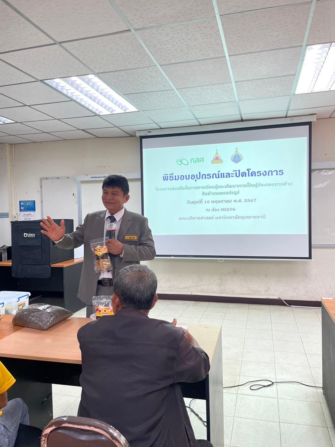 คณะบริหารศาสตร์ ม.อุบลฯ จัดพิธีปิดโครงการ และส่งมอบวัสดุ เครื่องมือในการพัฒนาอาชีพ ในโครงการ“ ส่งเสริมการเรียนรู้และพัฒนาการเป็นผู้ประกอบการด้านสินค้าเกษตรแปรรูป”