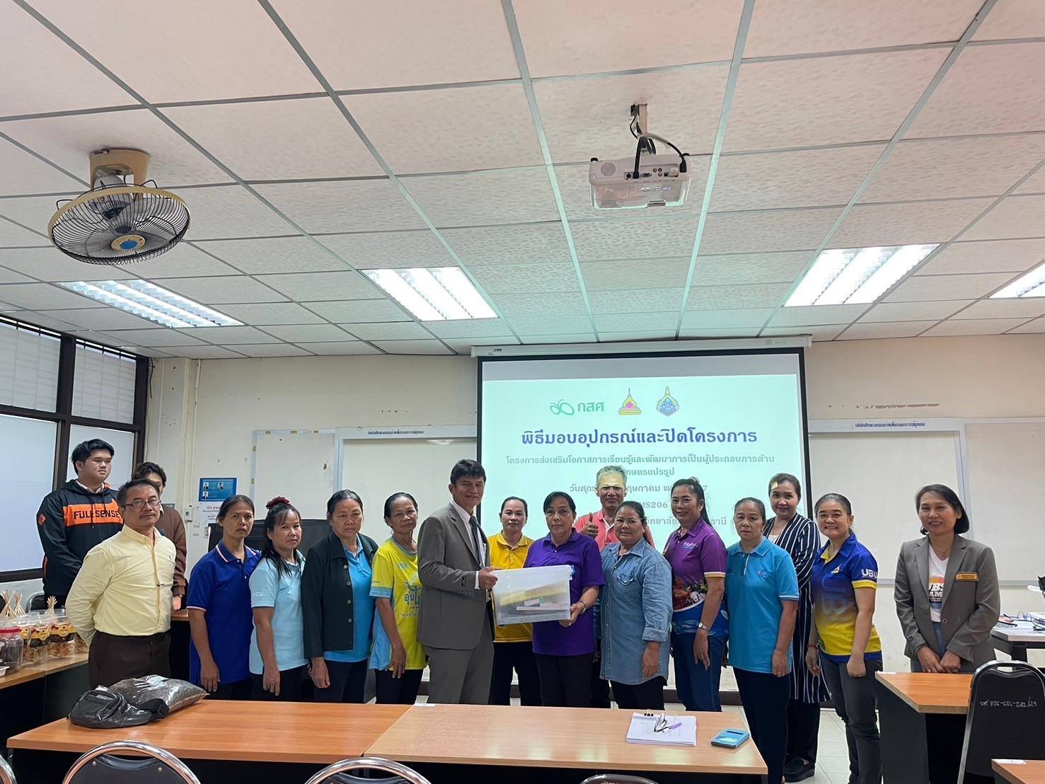จัดพิธีปิดโครงการ และส่งมอบวัสดุ เครื่องมือในการพัฒนาอาชีพ ในโครงการ“ ส่งเสริมการเรียนรู้และพัฒนาการเป็นผู้ประกอบการด้านสินค้าเกษตรแปรรูป”