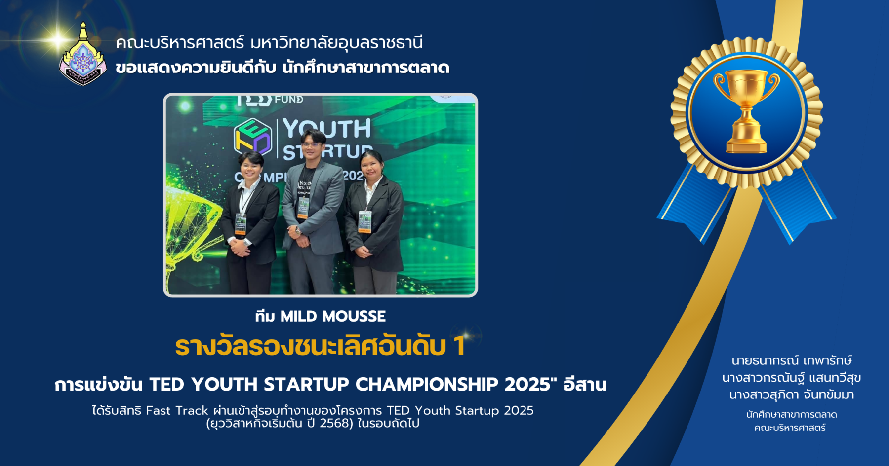 ทีม Mild Mousse สร้างชื่อ! คว้า รองชนะเลิศอันดับ 1 ในการแข่งขัน TED Youth Startup Championship 2025 – ภาคตะวันออกเฉียงเหนือ