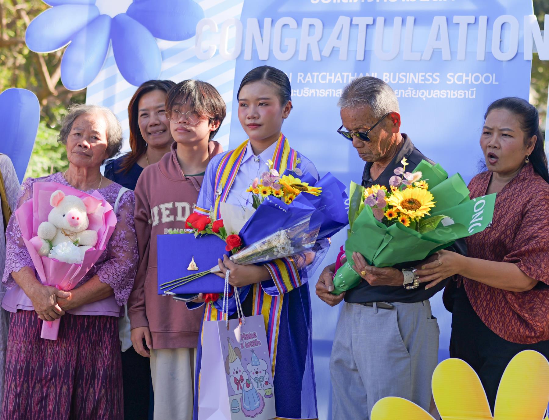 ประมวลภาพถ่ายบรรยากาศการต้อนรับและแสดงความยินดีกับบัณฑิต คณะบริหารศาสตร์ ในพิธีพระราชทานปริญญาบัตรแก่บัณฑิตมหาวิทยาลัยอุบลราชธานี ประจำปีการศึกษา 2567 ณ อาคาร MS วันที่ 24 ธันวาคม 2568