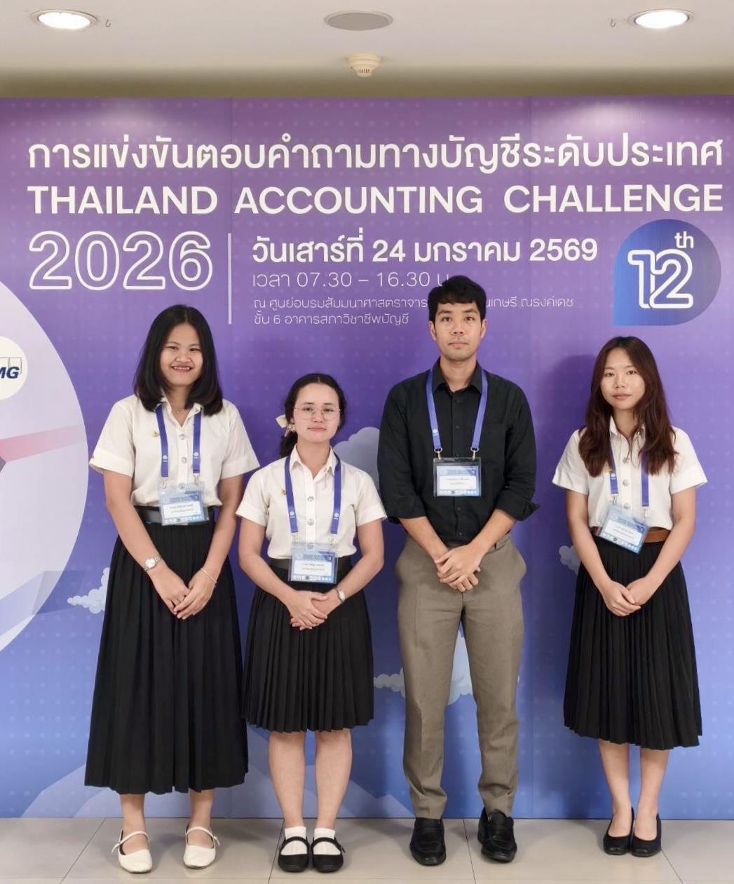 คณะบริหารศาสตร์ มหาวิทยาลัยอุบลราชธานี ขอแสดงความยินดีกับ นักศึกษาสาขาการบัญชี ที่สร้างชื่อเสียงและความภาคภูมิใจให้กับมหาวิทยาลัย จากการเข้าร่วมการแข่งขันตอบคำถามทางบัญชีระดับประเทศ Thailand Accounting Challenge 2026 (ครั้งที่ 12)